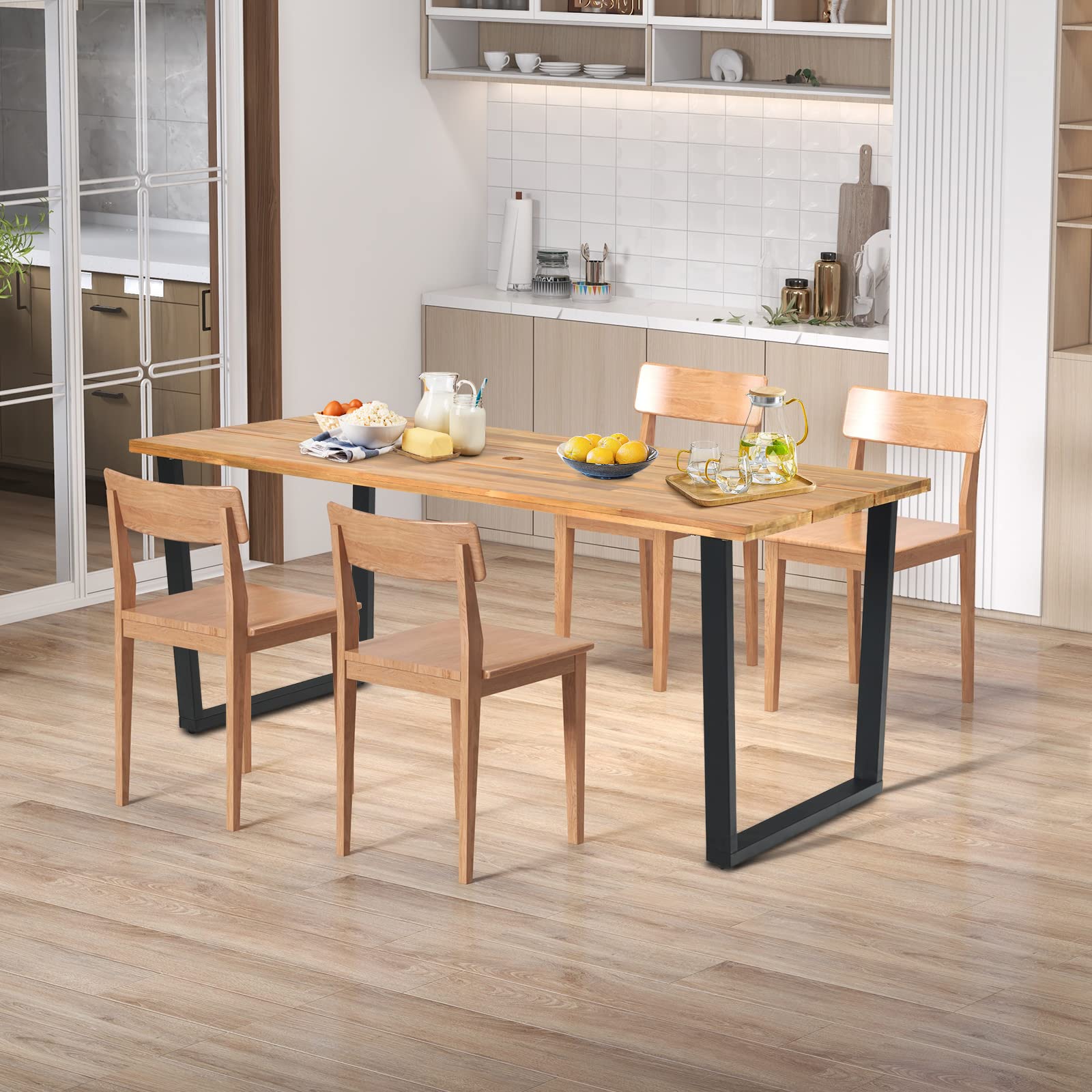 With 69"x 32"large tabletop, the table is available for 6 people to sit around at the same time. The tabletop is constructed of premium acacia wood, which is elegant and durable. And the metal legs with adjustable footpads ensure the stability of the whole table. Furthermore, you can add a patio umbrella to relax more comfortably as there is an umbrella hole in the middle. Apart from that, this practical patio table is also ideal for indoor use.