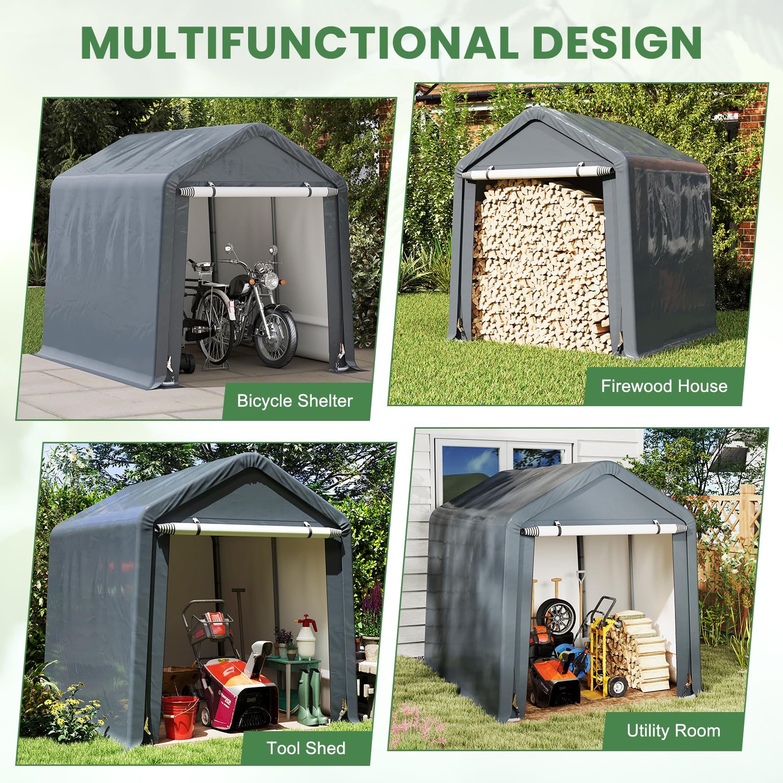 - Multifunctional Design: The heavy-duty storage shelter is a perfect solution to store your bikes, motorcycles, lawn mowers, patio furniture, pool equipment, firewood, and more. Whether in a garden, yard, or patio, the shed offers versatile functionality to meet your storage requirements.
