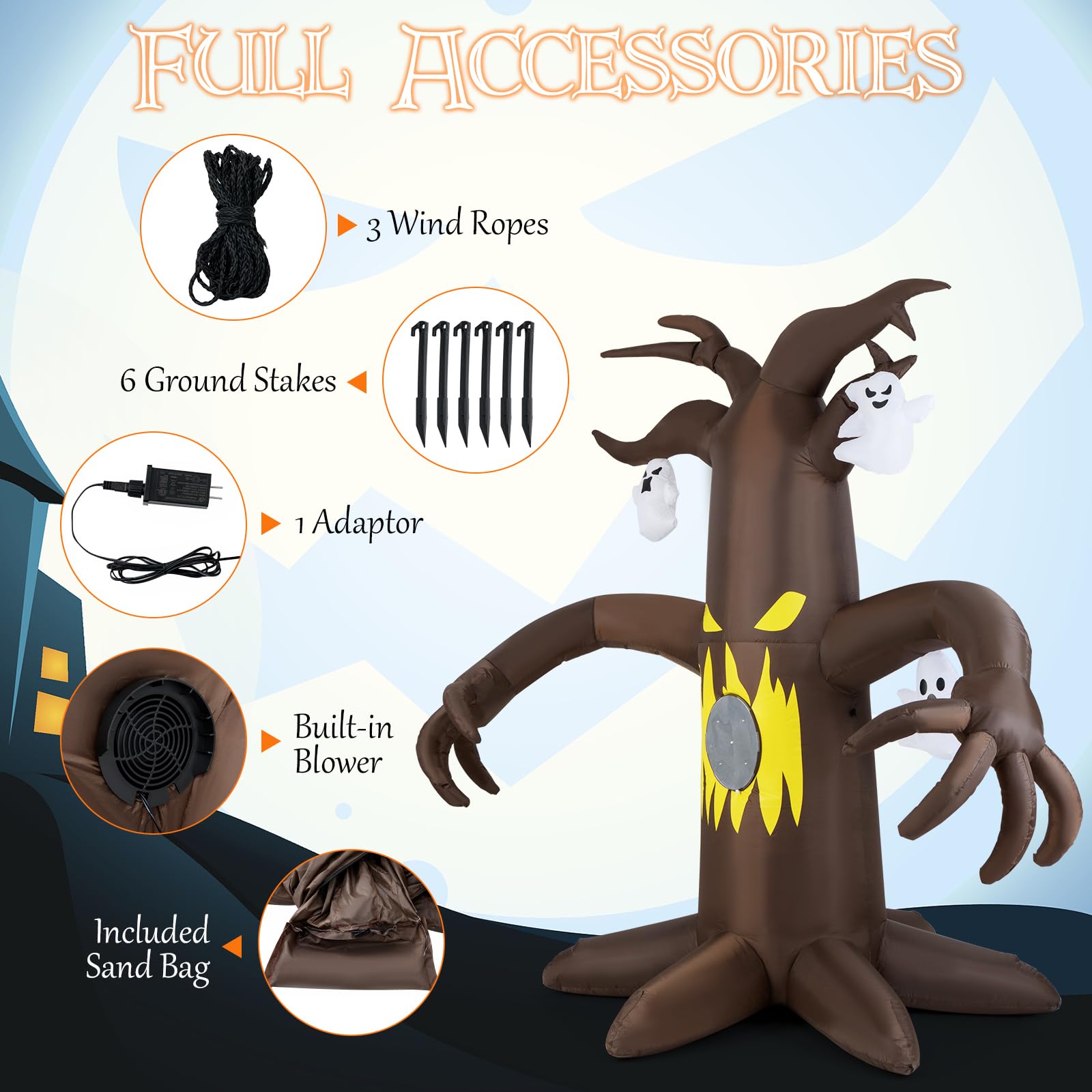 - Easy to Set up & Self-Inflation: With an included adaptor and a built-in blower, your dead tree and its ghastly occupants are ready for the scare in no time. Just zip up the zipper, connect the adaptor, inflate and watch it rise to its full, frightening height of 7.8 ft within 1 minute.