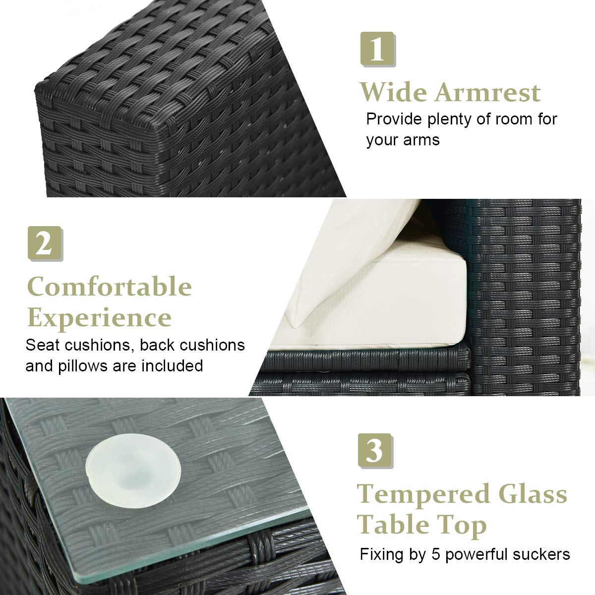 - Modern Style with Coffee Table: Modern wicker furniture set combines outstanding quality and chic appearance, and makes it great for your patio, garden, backyard, and poolside. Besides, the functional coffee table has a durable tempered glass top which is fixed by 5 powerful suckers to offer space for drinks and books.