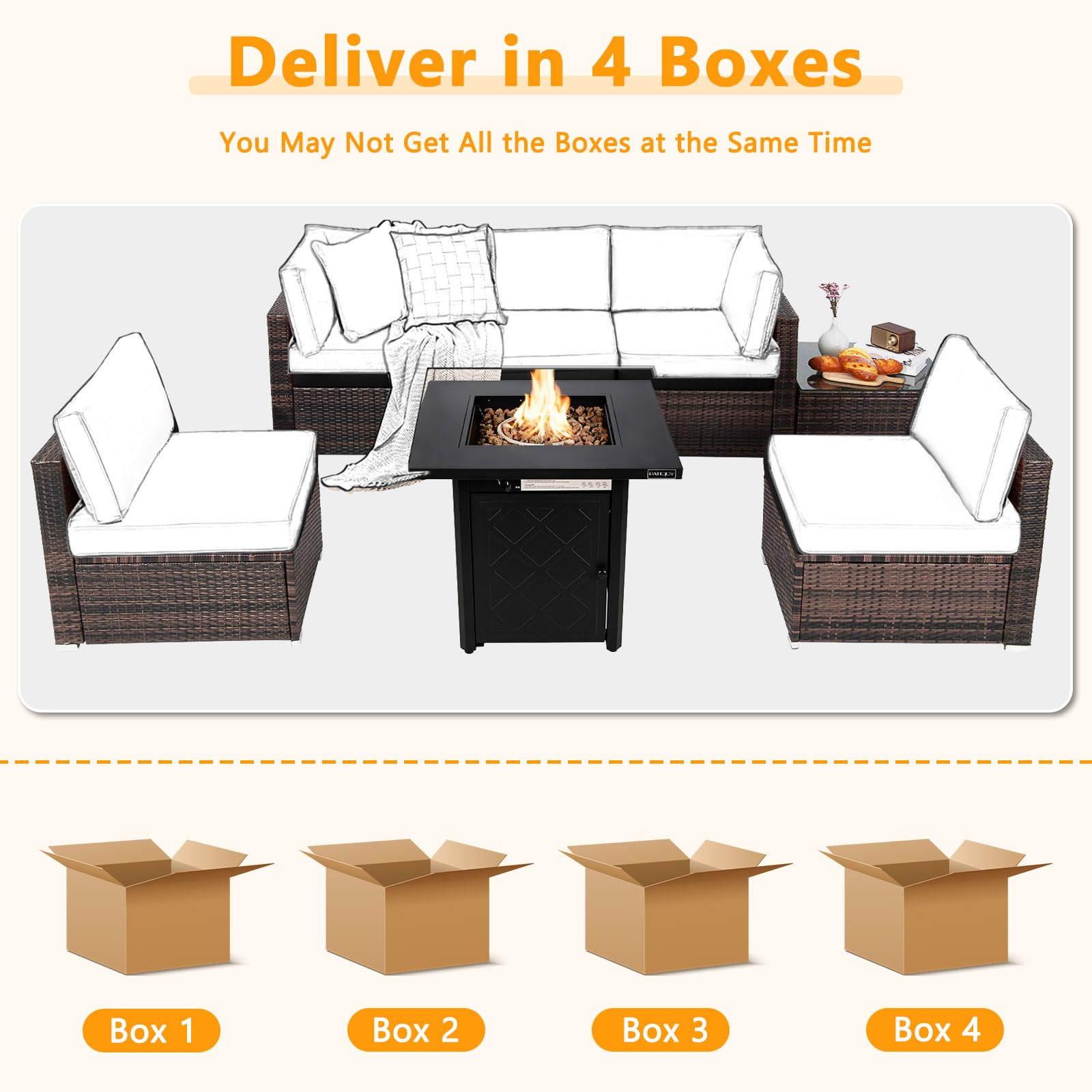 - Cushioned Comfort: This outdoor wicker furniture set includes soft back and seat cushions, designed for ultimate relaxation as you bask in the fresh air and fire's warmth.