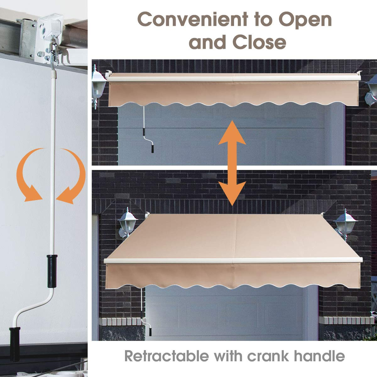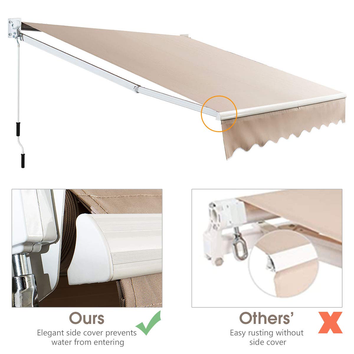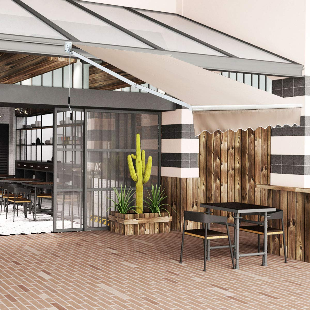 Are you still struggling with what awning to choose? Check out our retractable awning. With a large shed, an awning is an ideal tool for creating shade. And there is a long hand crank for opening and closing the awning within a minute. Plus, the angle of the shed can be adjusted from 40-100 degrees. What is more, the awning can be installed on surfaces of cement walls or brickwork. Made of lightweight but sturdy aluminum and premium polyester, the awing can be used for a long time. This awning efficiently protects your home or cafe from sun damage or drizzle and keeps the inside of your home cool on hot days.
