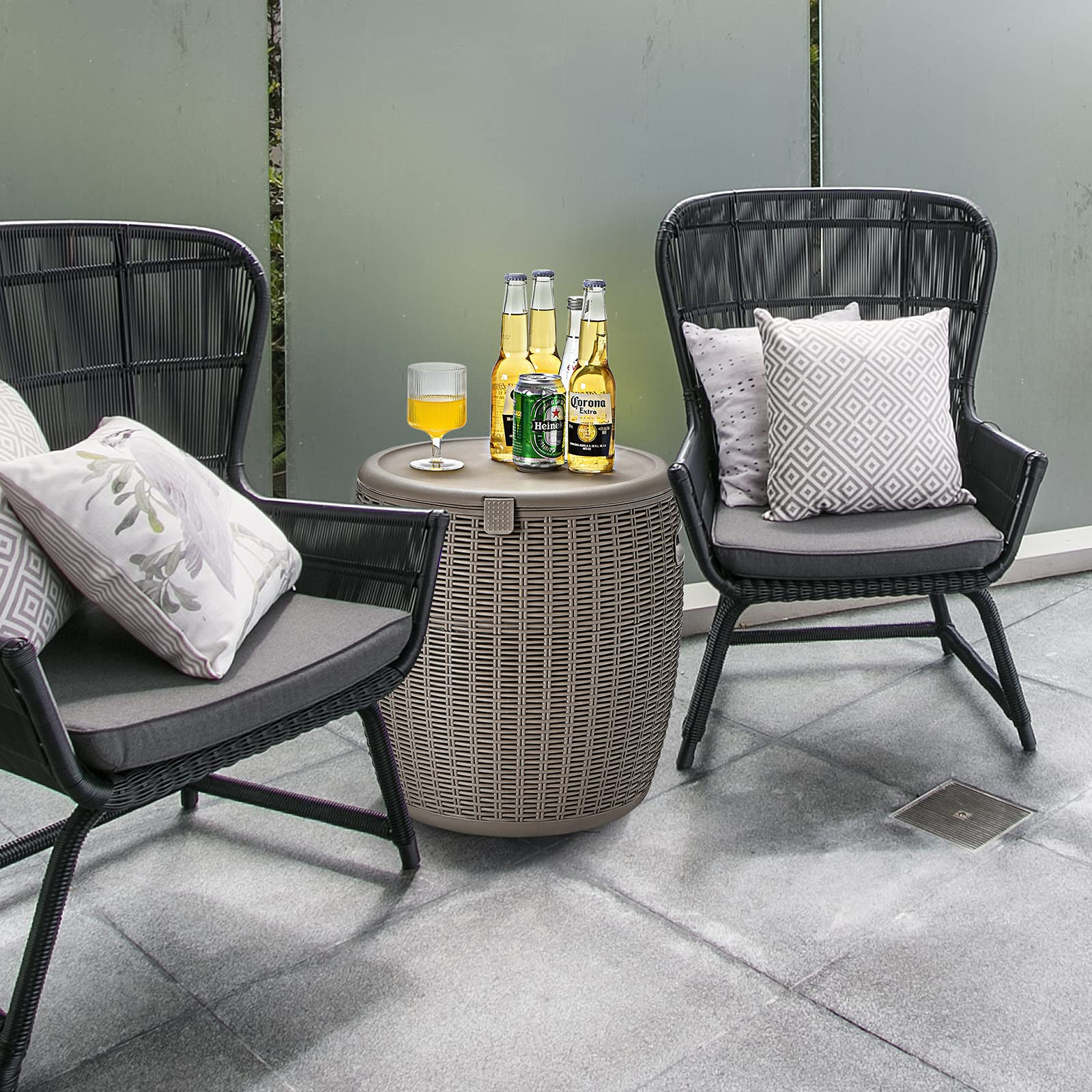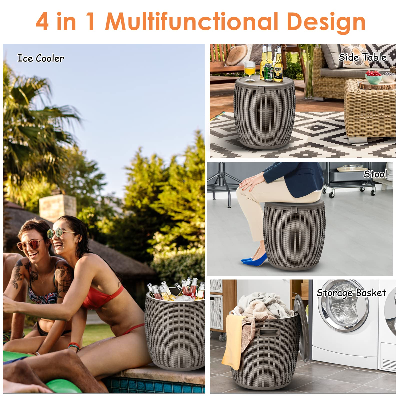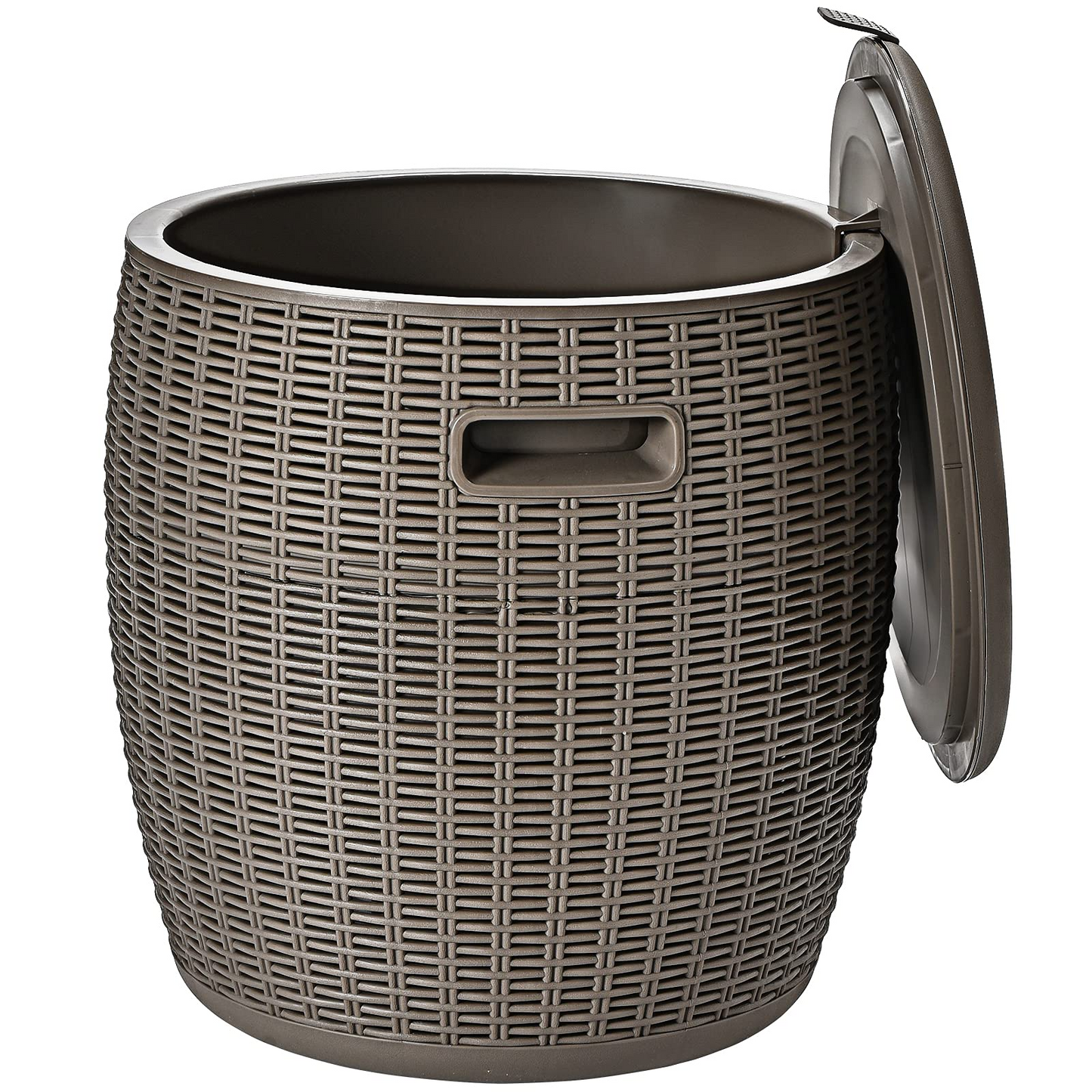 Are you looking for a practical ice cooler that meets other needs for your parties? Then you've come to the right place! Our multifunctional 4-in-1 ice cooler offers you the opportunity to enjoy the advantages of 4 for the price of just one product! With a capacity of 35 L(9.5 gals), it is able to keep drinks and snacks cool for guests for hours. Put the lid on and you have a side table for drinks or a stool with storage space! The smooth inside is easy to clean, and it has a drain plug for draining off the molten liquid. With its rattan look, it is also an absolute eye-catcher.