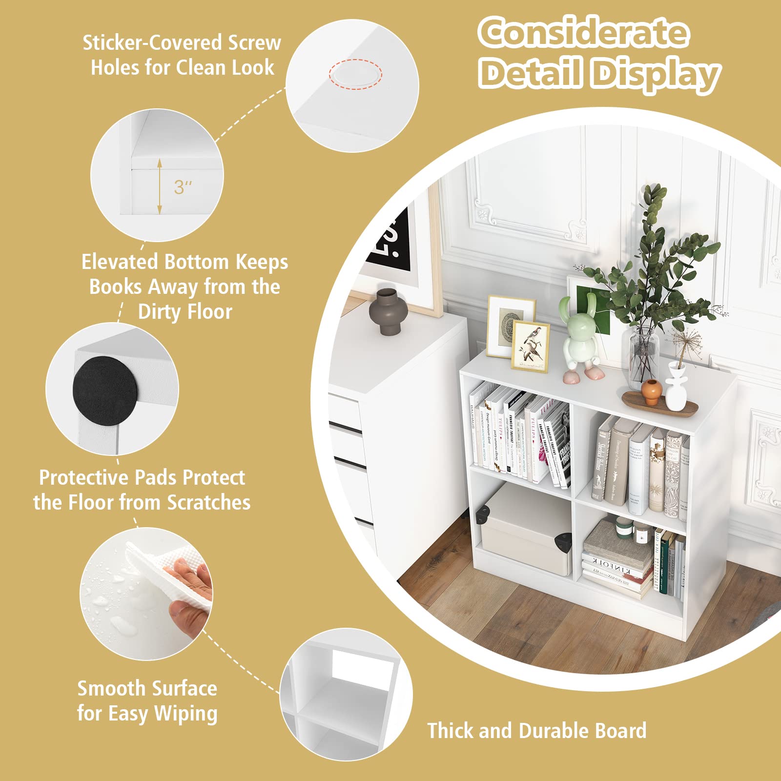 - [Stable Anti-Tipping Structure]: Crafted of solid boards, the 4-cube bookshelf displays ideal sturdiness and toughness for a longer lifespan. More thoughtfully, 2 anti-tipping kits are supplied to closely attach themselves to the wall for better stability. So risk of sudden toppling will be greatly reduced for higher safety.