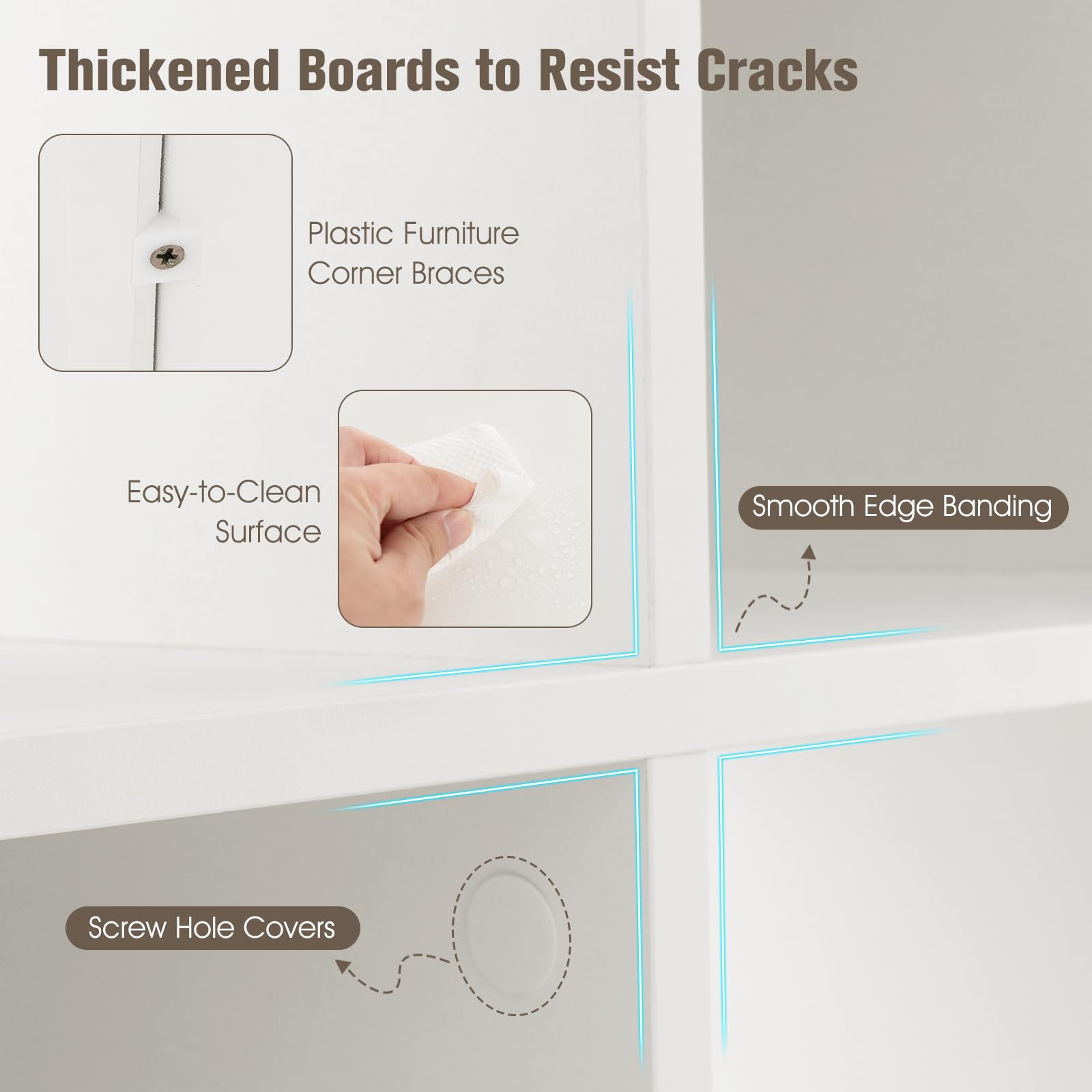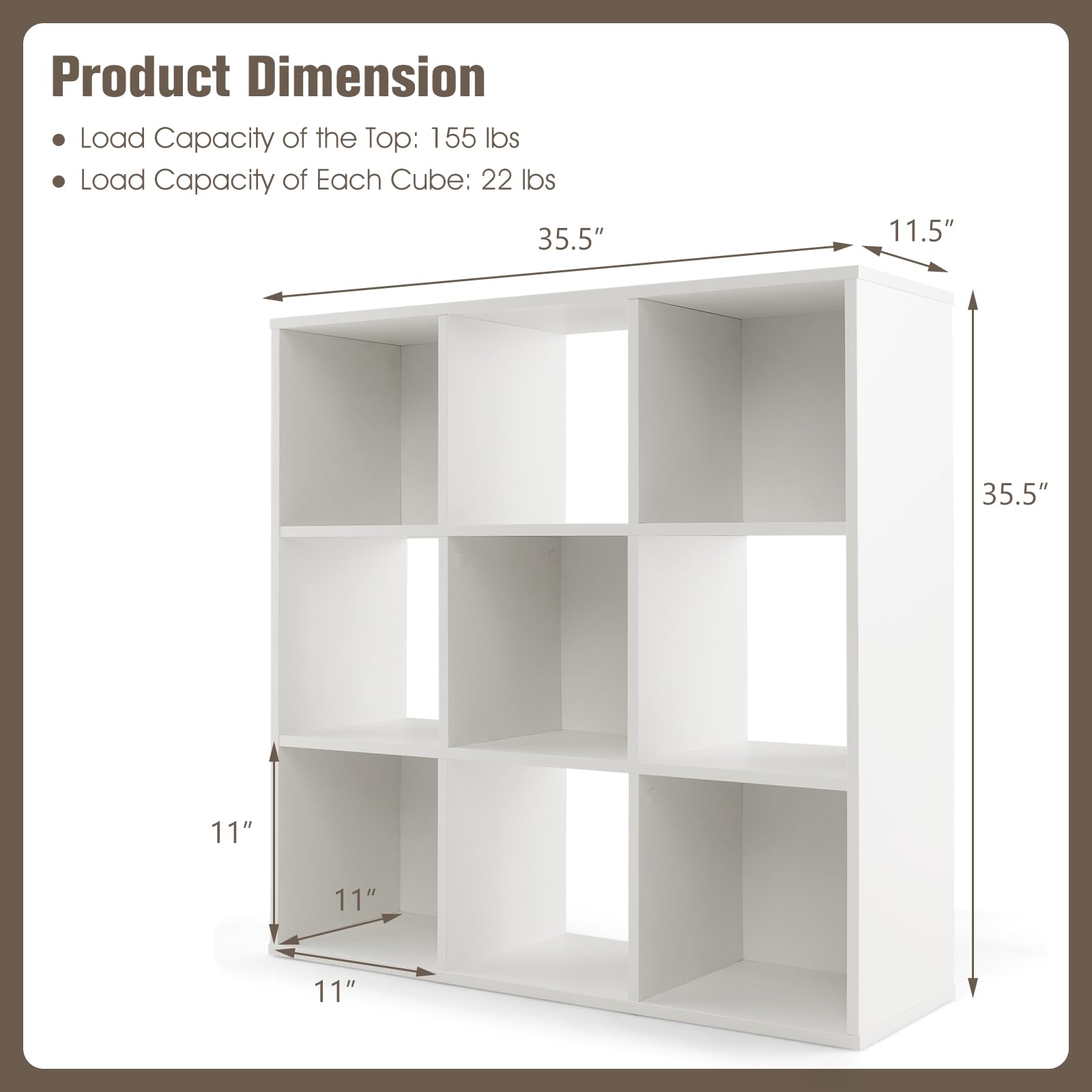 - [All for Higher Security]: For safety, the 9-cube bookcase boasts 2 anti-tipping kits that safeguard firm attachment to the wall. Besides, it comes with smooth edge banding & screw hole covers to avoid scratching your skin. Thanks to the anti-slip foot pads, the floor will be perfectly protected, no more accidental scratches.