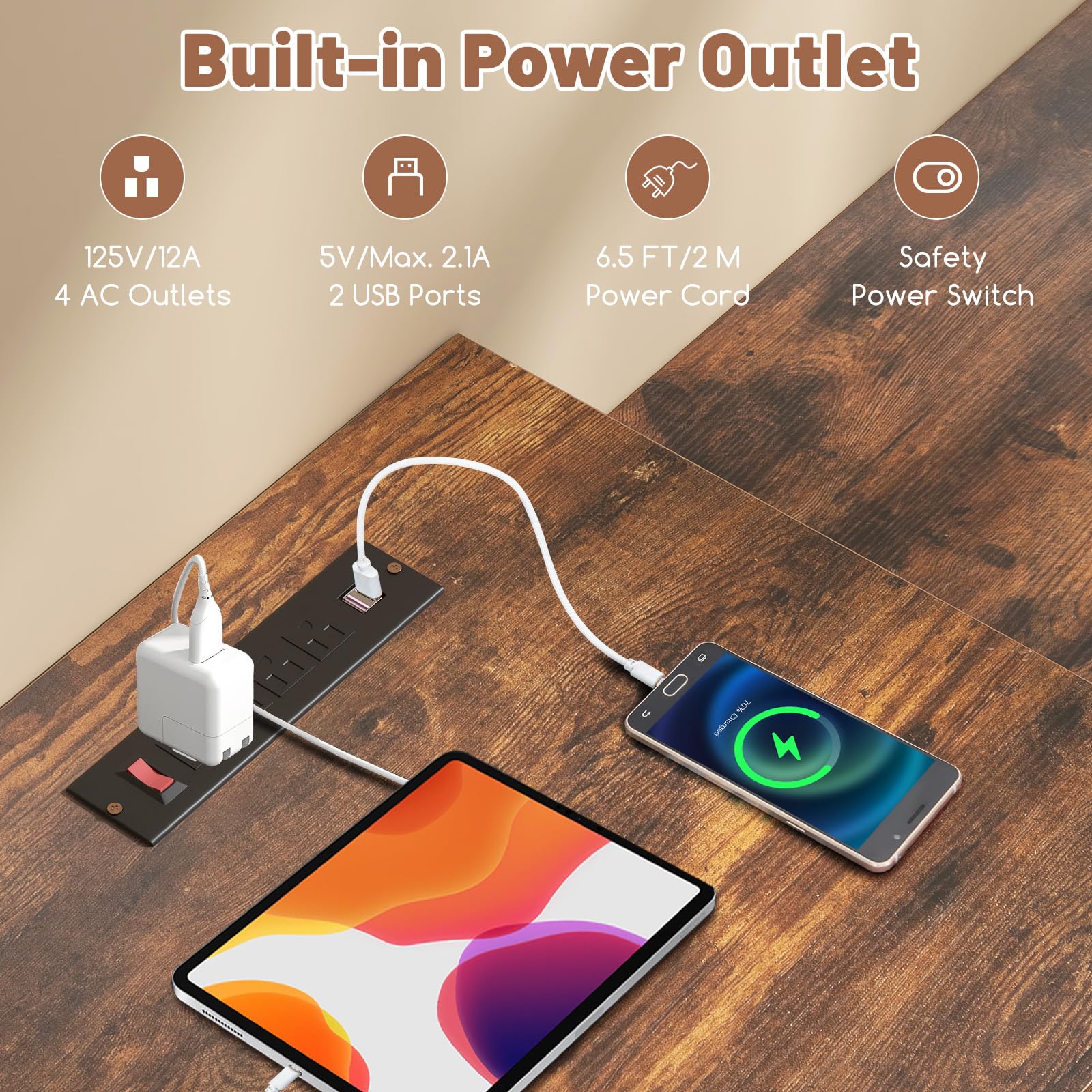• Powerful Charging Convenience: With a built-in power outlet, the long computer desk eliminates the need for messy extension cords. With 4 AC outlets and 2 USB ports, it can easily power up your devices without cluttering your workspace.