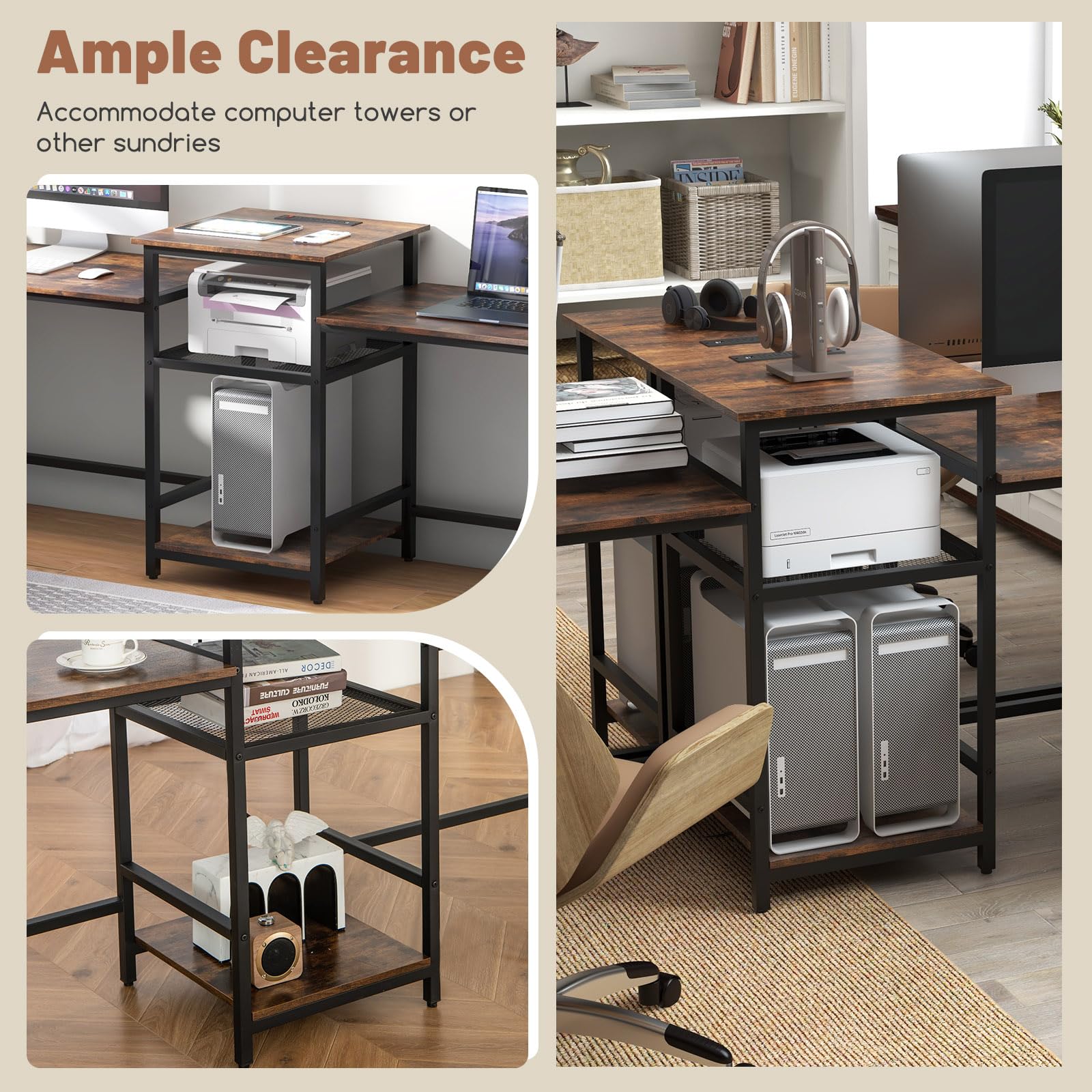 • All-in-One Functionality: With a spacious design and a width of 97 inches, the 2-person desk provides enough space for both users to work on their computers, spread out documents, and have room for other essentials. The middle printer stand keep saves valuable desk space and keeps printer within arm’s reach.