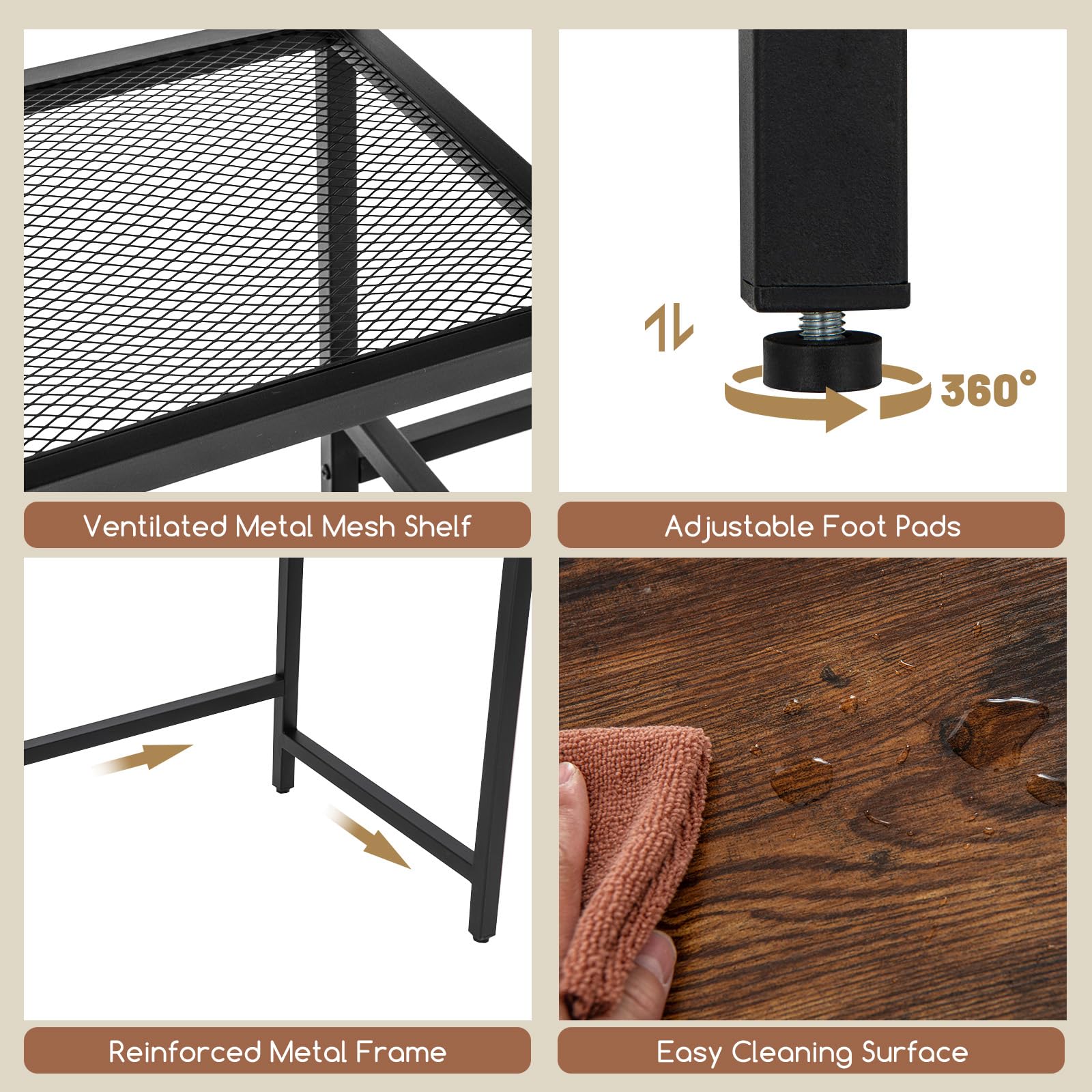 • Organized Under Desk Storage: In addition to spacious tabletop, the double desk is also equipped with a ventilated metal mesh shelf and a bottom shelf. Ample clearance is designed to accommodate computer towers or other sundries.