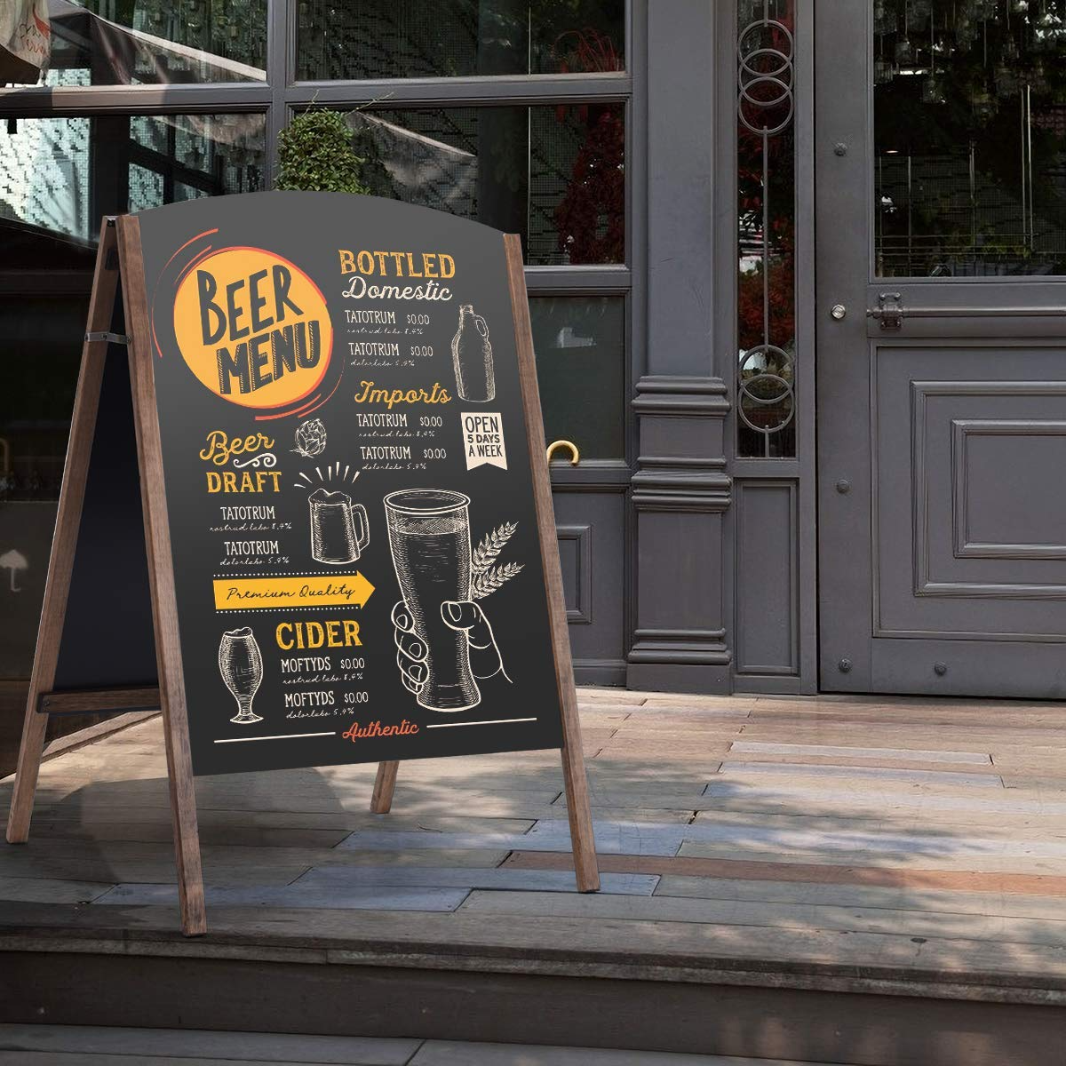 Double chalkboard design means you can attract customers coming from multiple directions