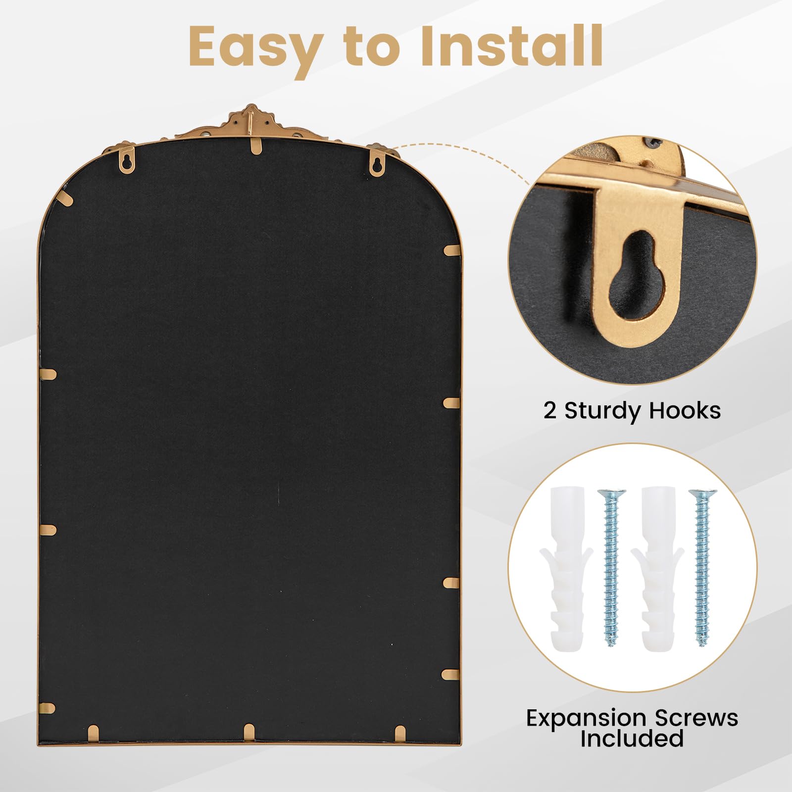 - Hassle-free Installation: Equipped with 2 sturdy hooks and expansion screws, this arched vantage mirror is designed for easy setup. Perfectly secure your new home addition without professional help, making it a practical choice for immediate display.