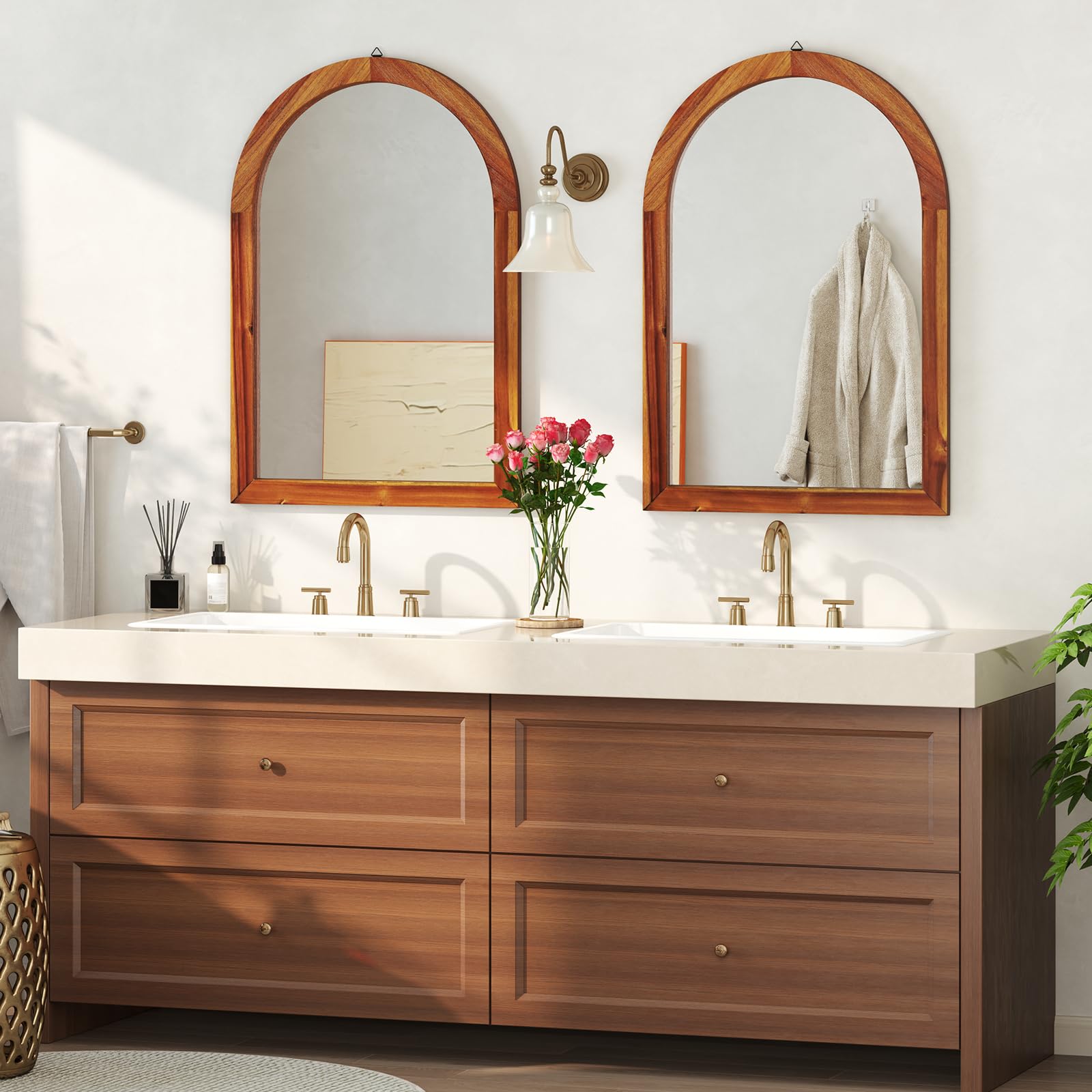 Built with a solid and natural acacia wood frame, this wall mirror is ideal for adding a touch of rustic elegance to any room. This versatile mirror is not just a decorative piece but a practical addition to your home. Whether mounted in your entryway, living room or bedroom, it brings light and depth into your space. The sturdy metal hook allows for easy hanging. Moreover, the mirror is made of shatterproof glass to minimize risk and ensure durability. An added layer of explosion-proof film on the back of the mirror acts as a protective barrier, enhancing safety.