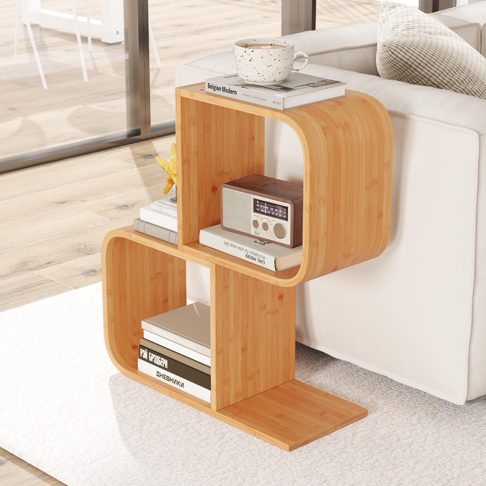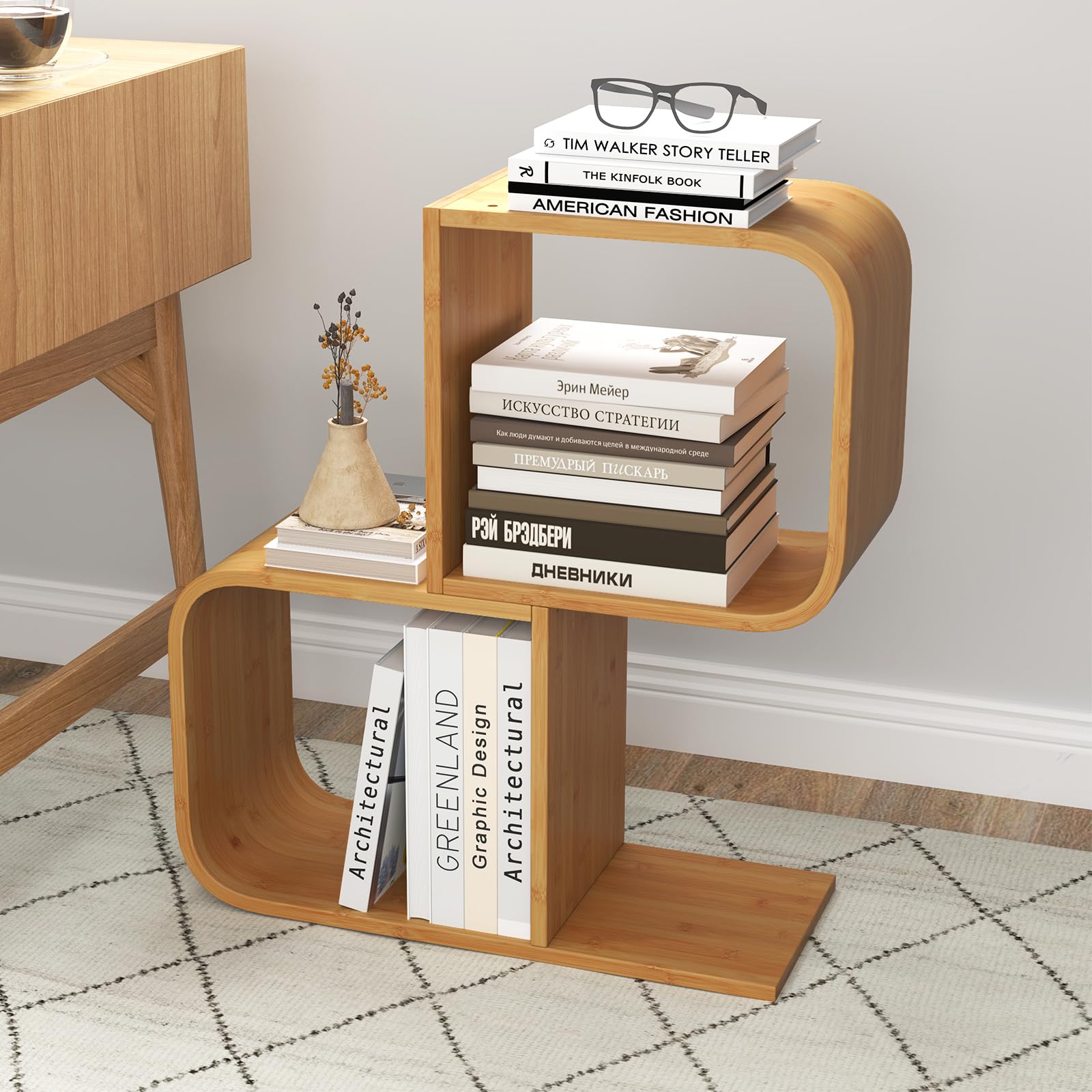 Elevate your decor with our innovative 2-tier S-shaped bookshelf, crafted from high-quality bamboo for durability and a natural touch. This stylish display shelf offers efficient open storage, perfect for organizing books, photos, ornaments, potted plants, storage boxes and more in your living room, bedroom, or study room. The secure and stable structure includes an anti-toppling device and non-slip foot pads, ensuring higher safety and stability. Thoughtful details such as smooth curved edges and easy-to-clean surface provide you with a better experience. Compact and space-saving, this S-shaped bookshelf maximizes vertical space without compromising style, ideal for smaller apartments or tight spaces. Upgrade your space with this modern and functional bamboo bookshelf today.