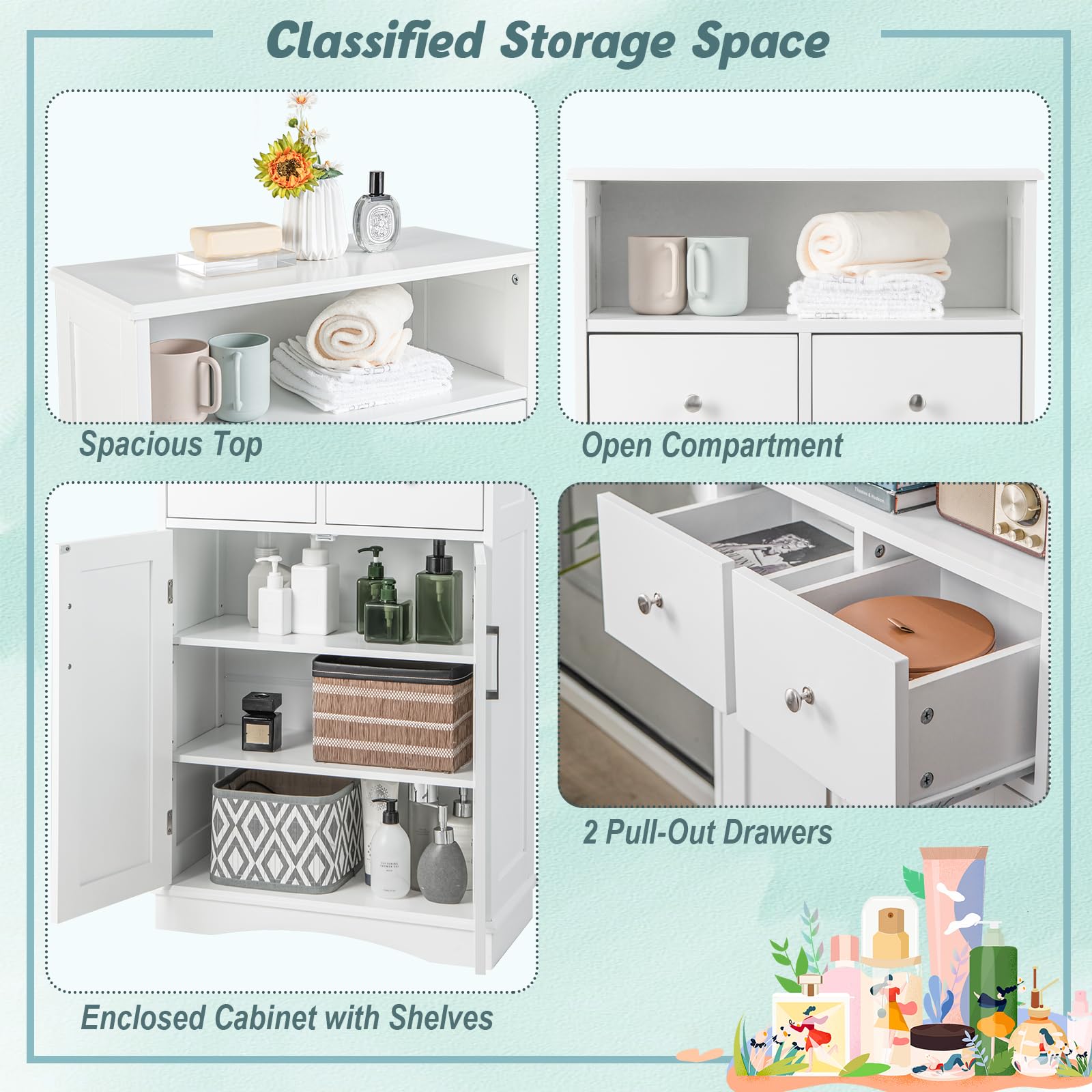 Tangkula Bathroom Cabinet, Freestanding Storage Organizer w/2 Drawers & 2 Doors