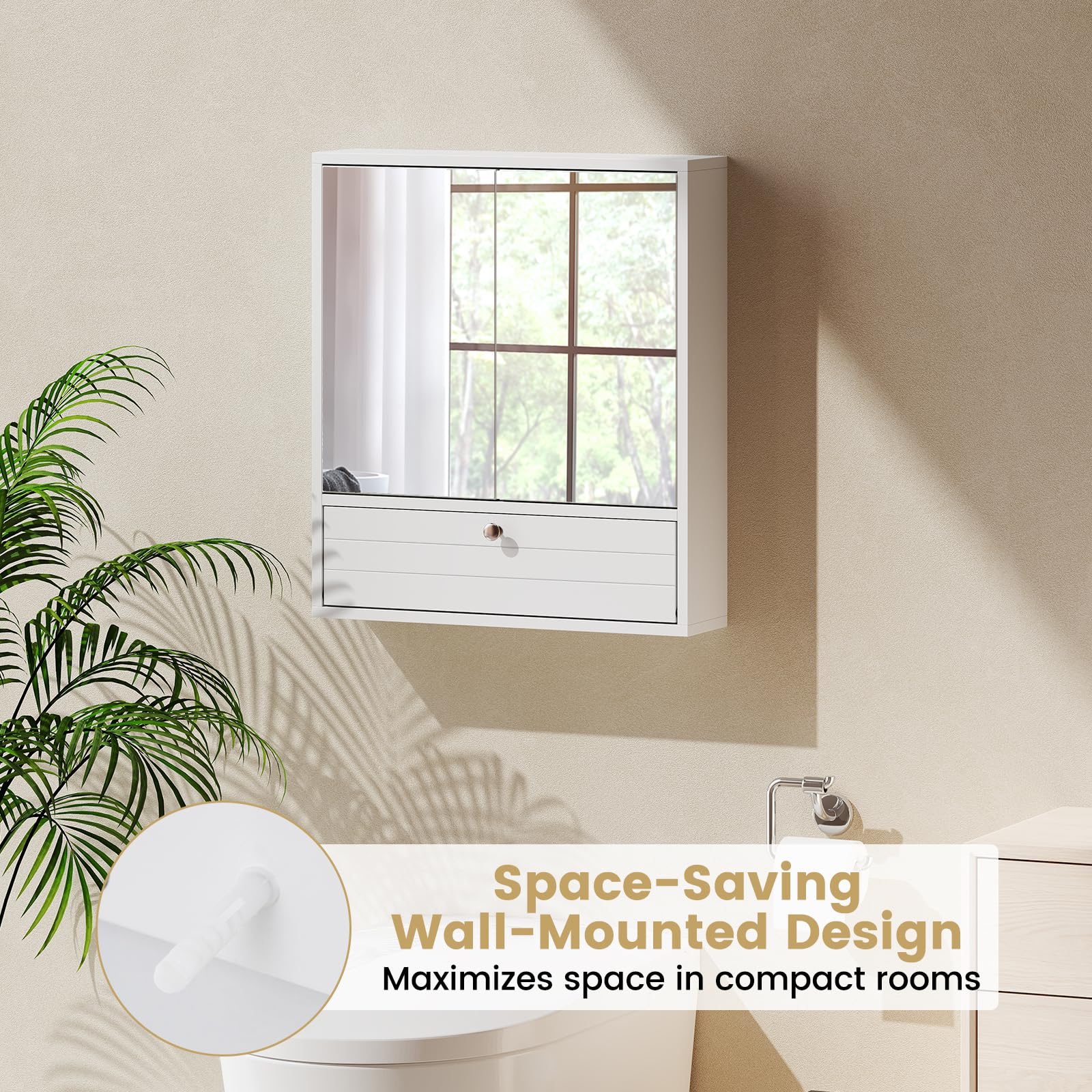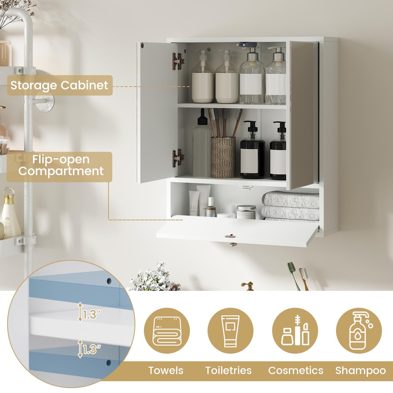 Tangkula Bathroom Cabinet with Double Mirror Doors