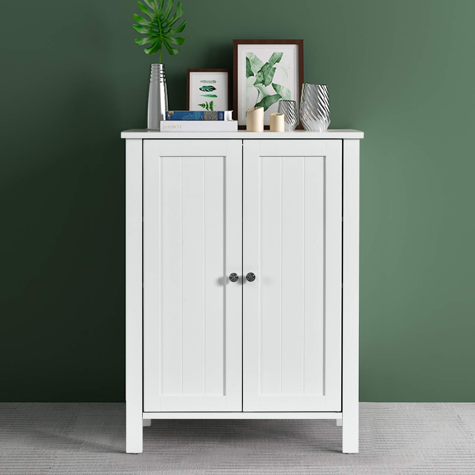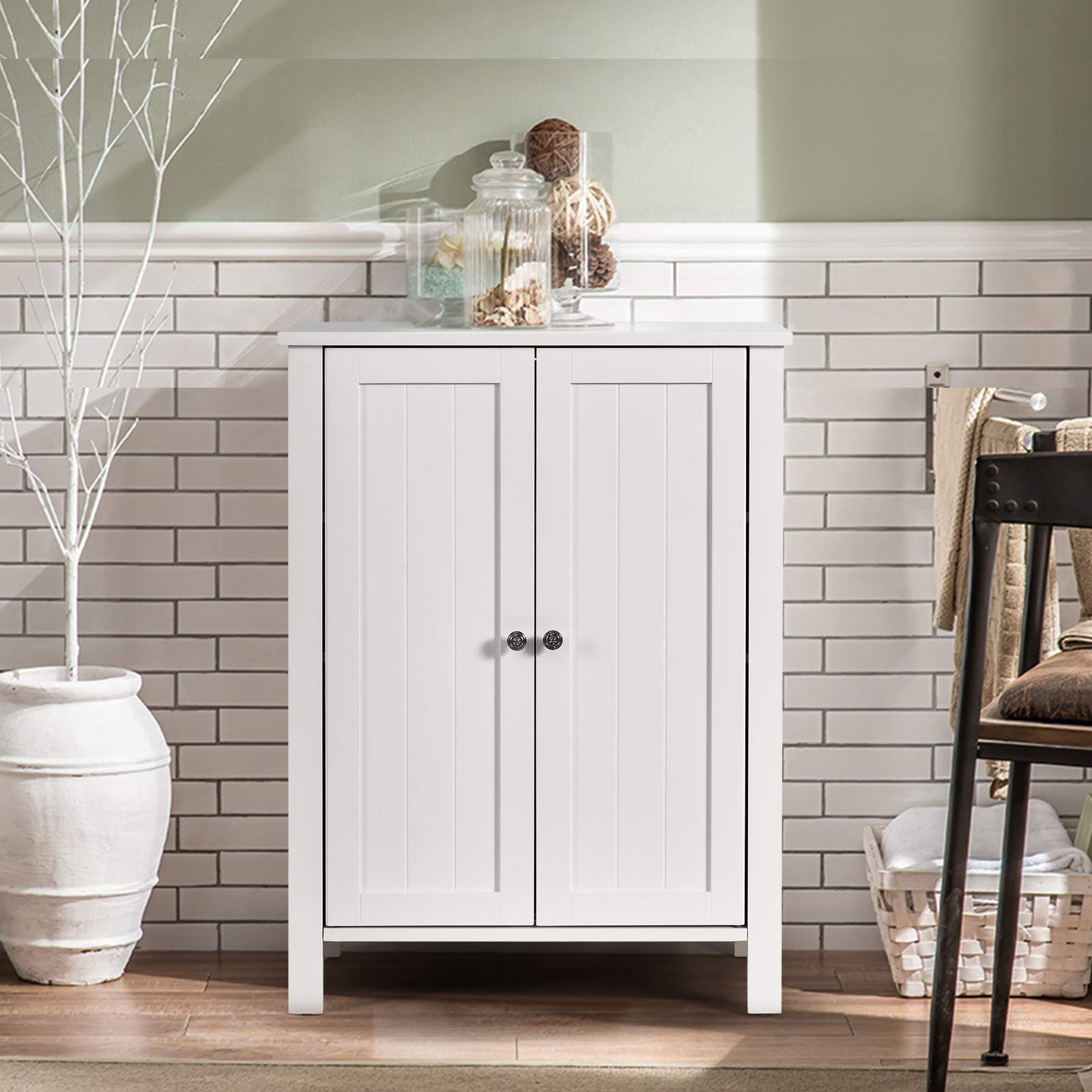 The bathroom cabinet is made of high-quality MDF and engineered wood to ensure good strength and durability. 2 interior shelves are designed with 6 adjustable heights, which allow you to customize the spacing of the shelves according to the storage items. Moreover, it features spacious space for freely putting shampoo, shower gel, roll paper, towels, etc. You can serve it as a bathroom cabinet, cupboard, or shoe organizer so that it is an ideal storage solution for the bathroom, living room, kitchen, and entryway.