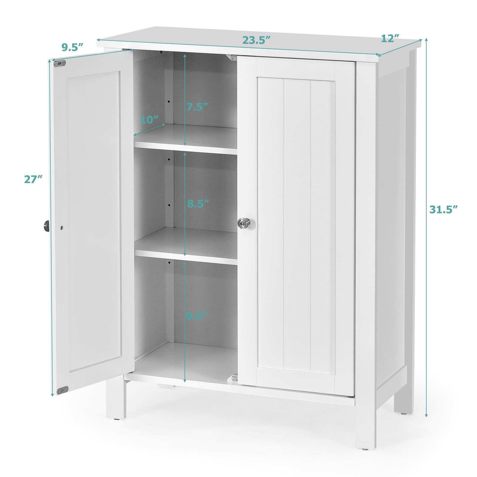 - Humanized Design: The closed storage room with double doors can keep your stuff dry and clean. 2 metal knobs make it convenient to open and close. In addition, the storage cabinet is designed with a wall anchor kit to avoid tipping over and wobbling for extra safety.