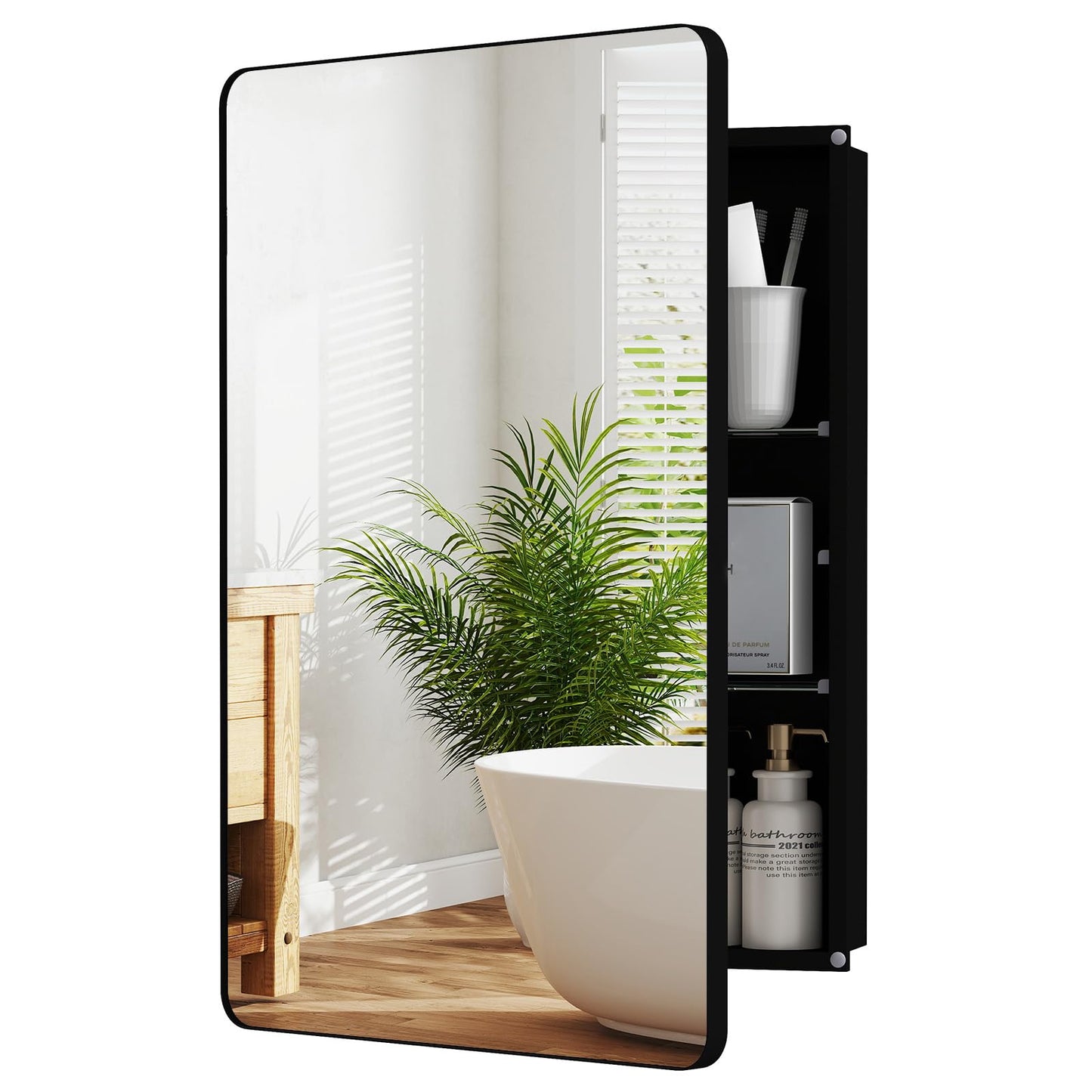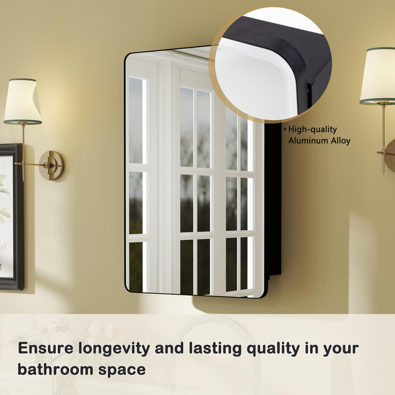• High-Definition Beveled Mirror: The bathroom wall cabinet features an HD beveled mirror that provides a clear image of your grooming. The elegantly rounded design infuses the entire bathroom with a sophisticated touch. The shatterproof mirror is designed to minimize the risk of injury and enhance safety in the event of an accidental collision