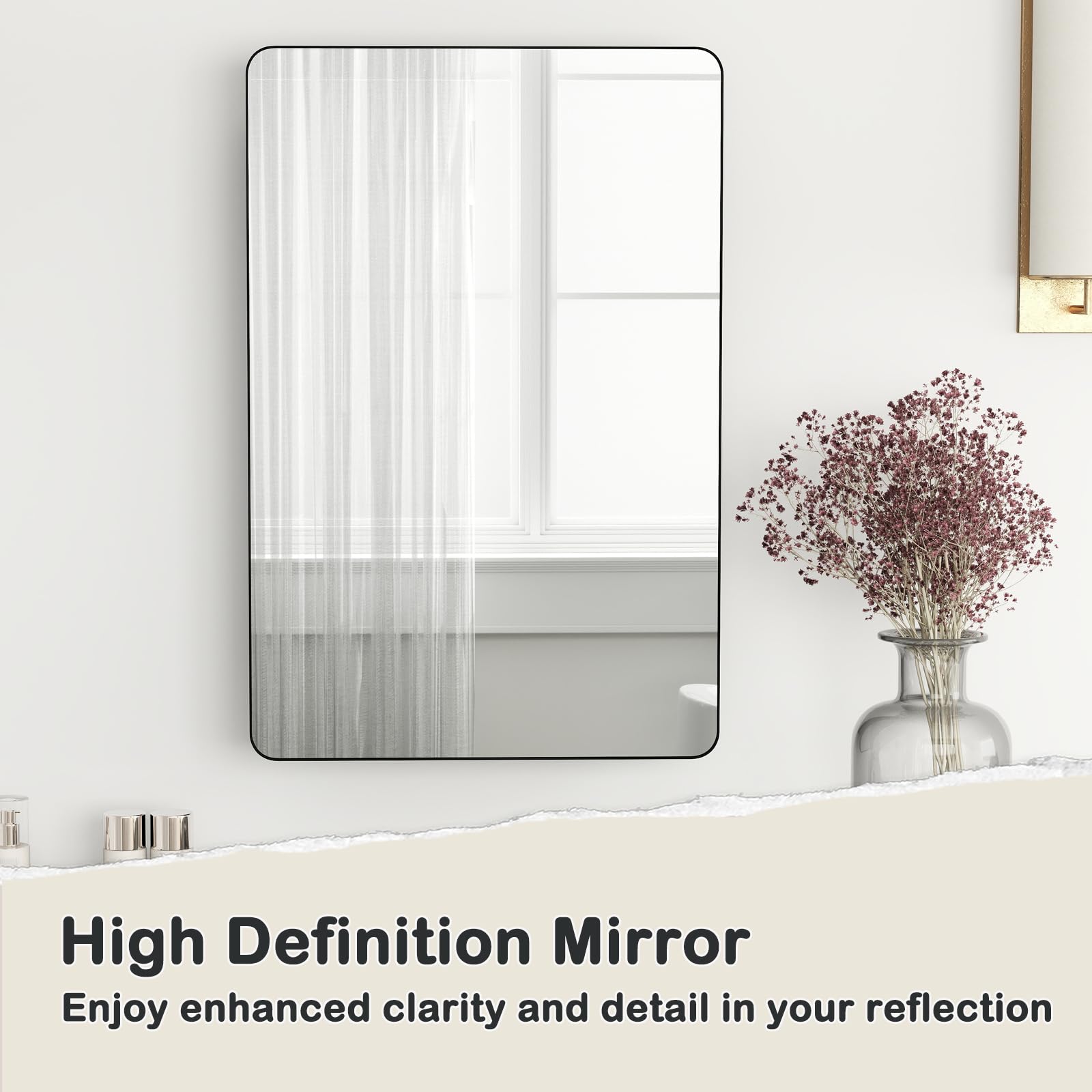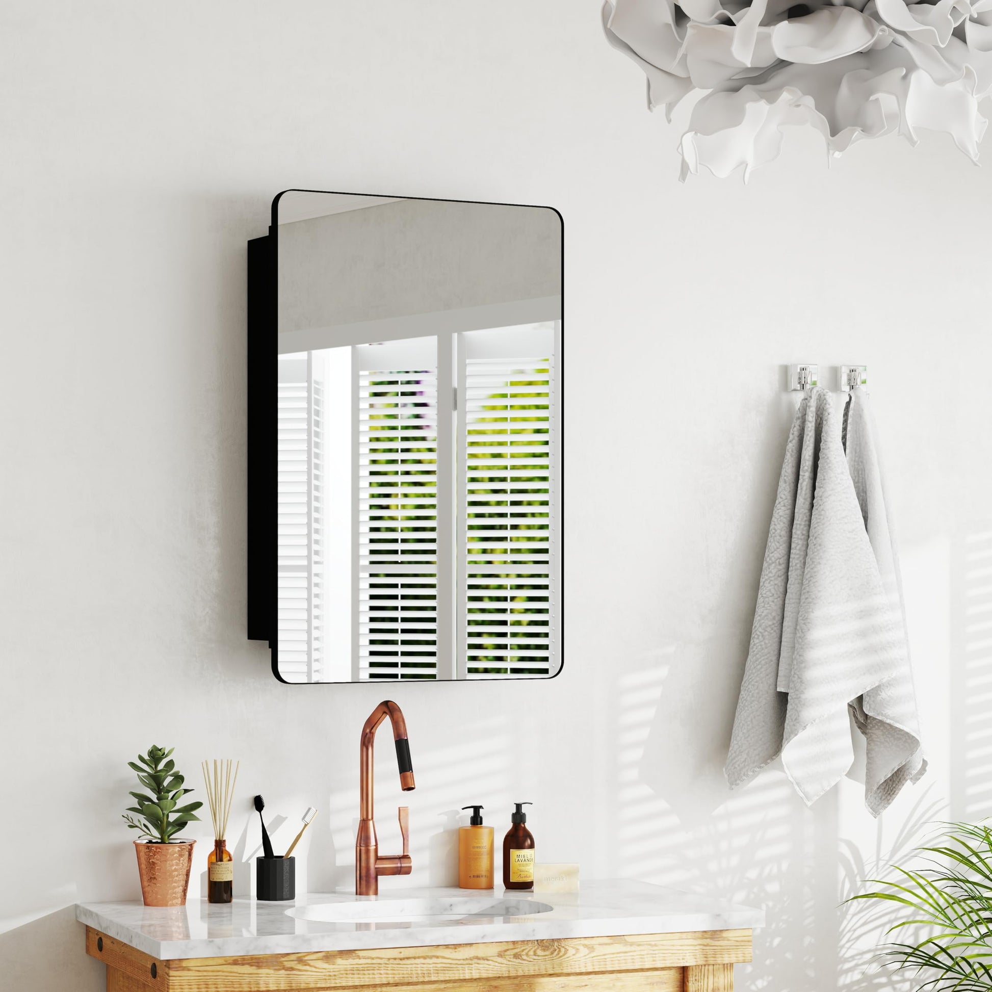 Rounded corners on the mirror provide a sleek aesthetic and ensure safety