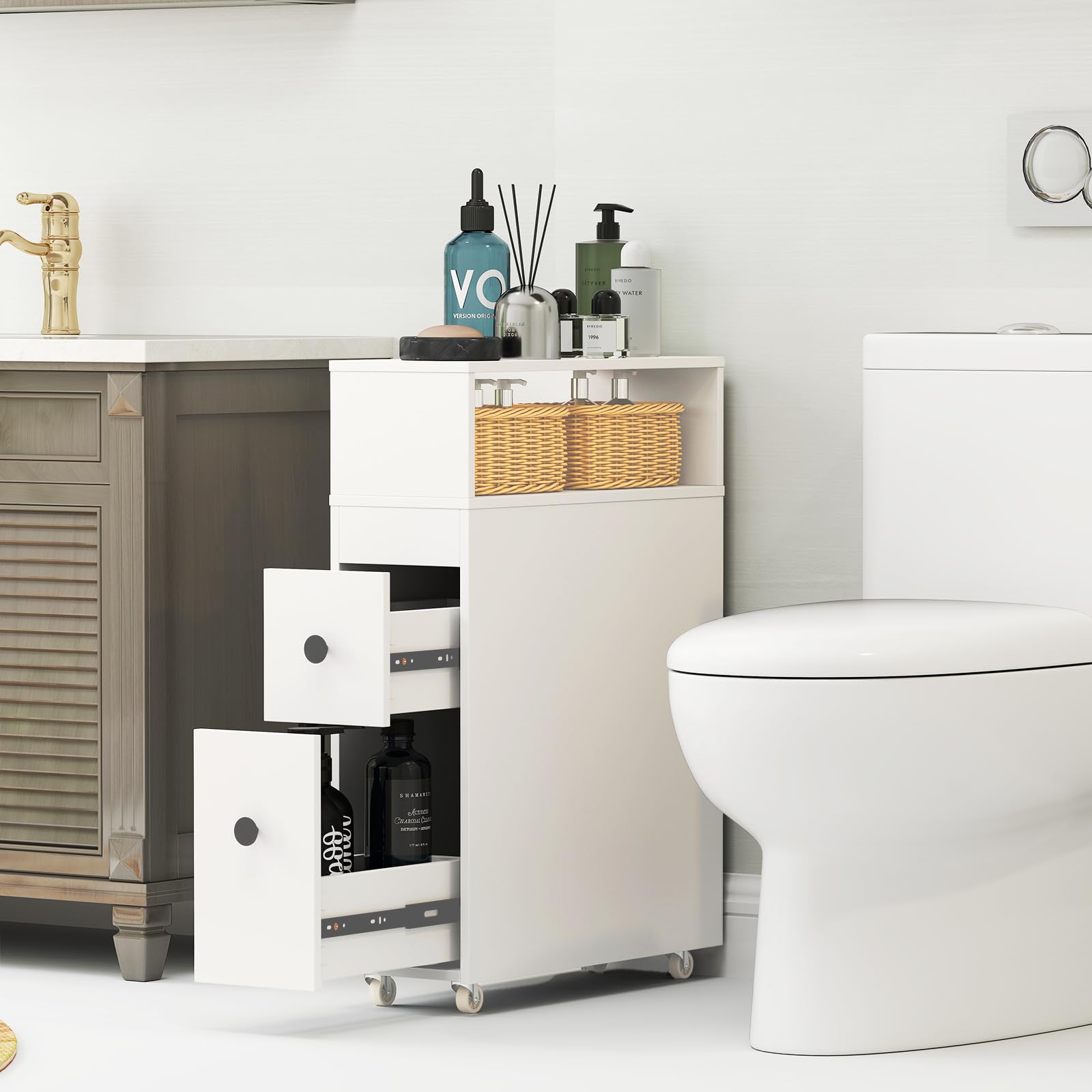 Tangkula Bathroom Storage Wood Bathroom Rolling Floor Cabinet