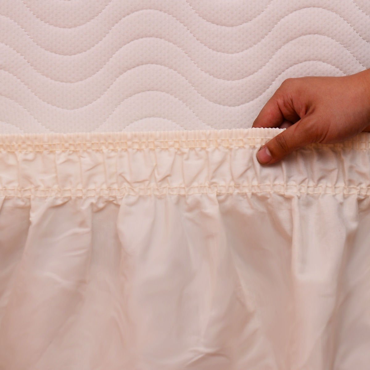 Here Is Our Elastic Bed Wrap Ruffle Bed Skirt, Which Will Be A Great Decoration To Your Bed Room. The Elastic Trimmed Ruffle Makes It Easy To Put On And Take Off Your Bed, You Won't Even Need To Lift The Mattress. It Is Not Only A Decoration, But Also Can Hide Your Box Spring And Underneath Storage Too.