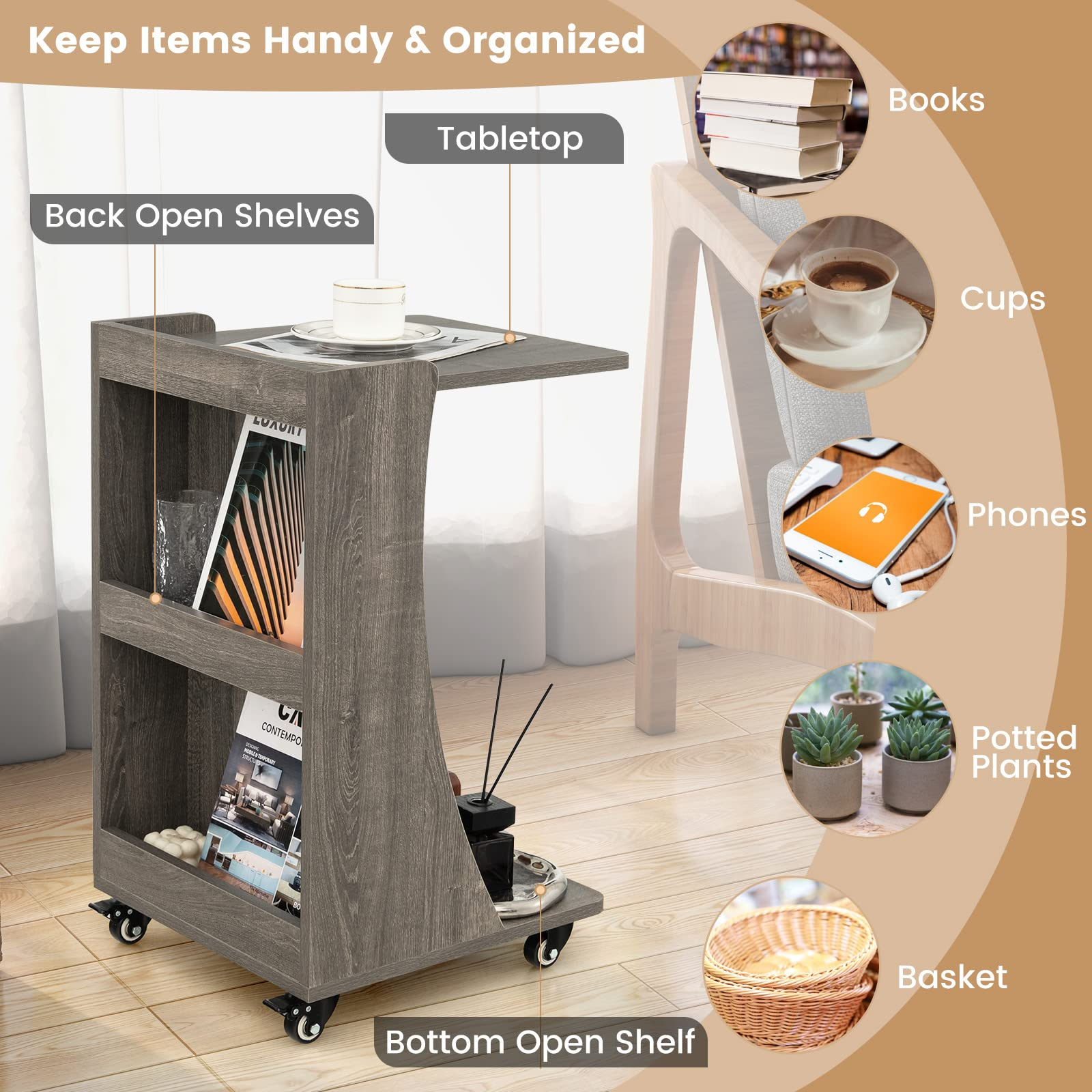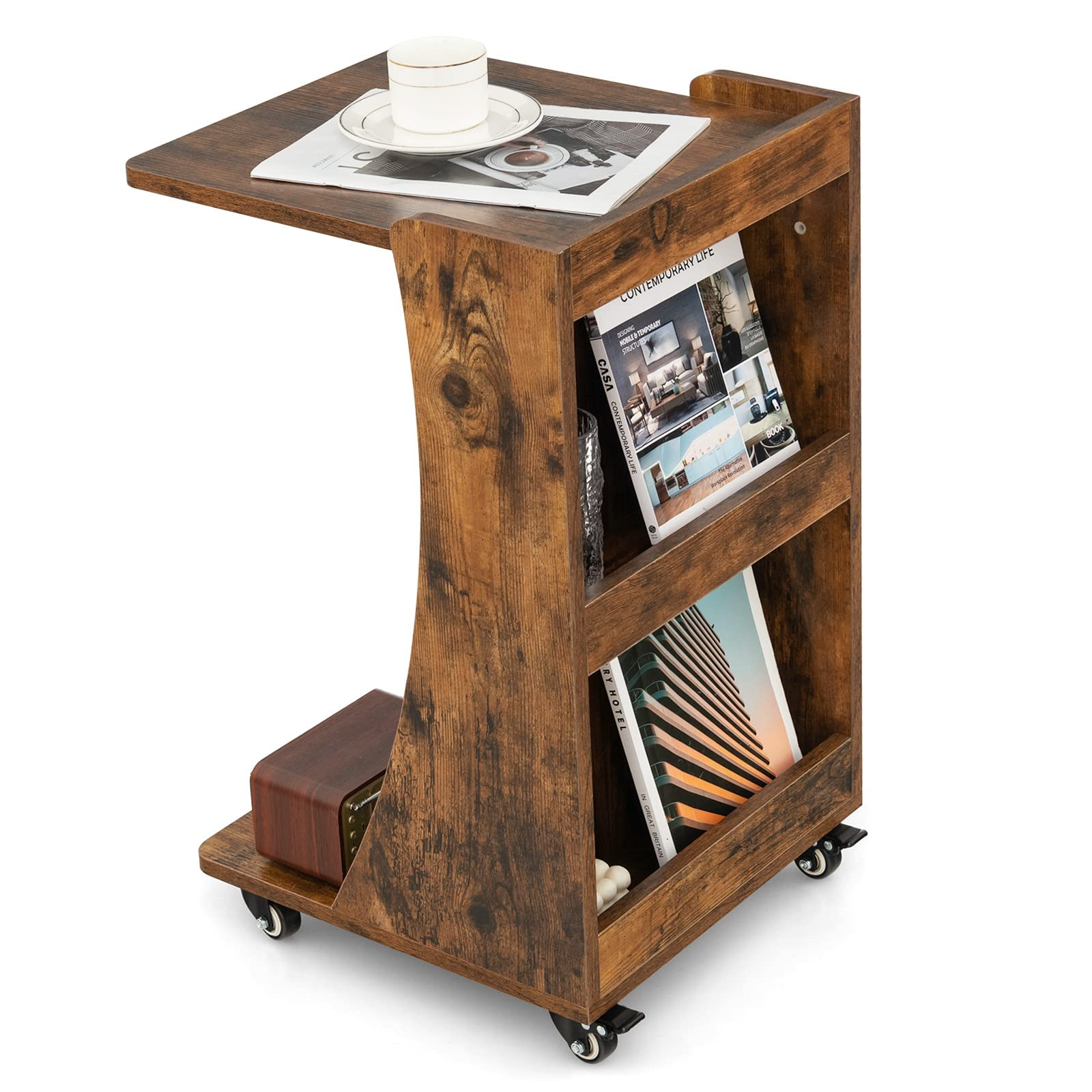 This C-shaped table is designed with multiple storage spaces to store daily used items. It keeps everything stored near your side and saves the trouble of bending over to reach your essentials. The sofa side table is crafted from premium engineered wood with wide panels, ensuring stability and strong support for your items. Besides, the table with smooth rolling wheels can move freely from room to room. The small table can serve as a bedside table, laptop table, couch table, snack table, or coffee table in your living room or bedroom. Thanks to the c-shaped design, this end table can easily slide next to your sofa or chair. Taking into account practicality, durability, and aesthetics, this rolling end table will satisfy you!