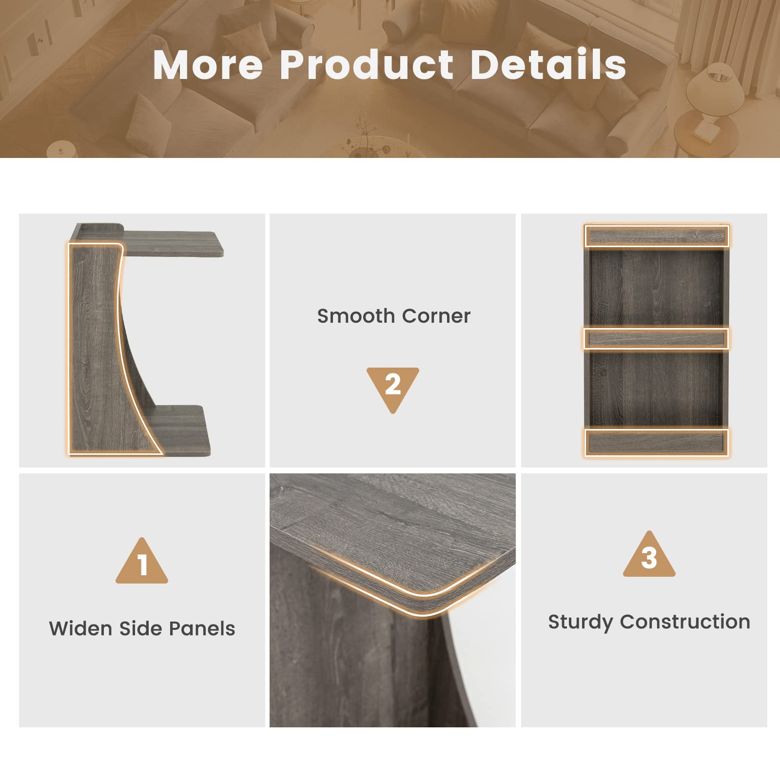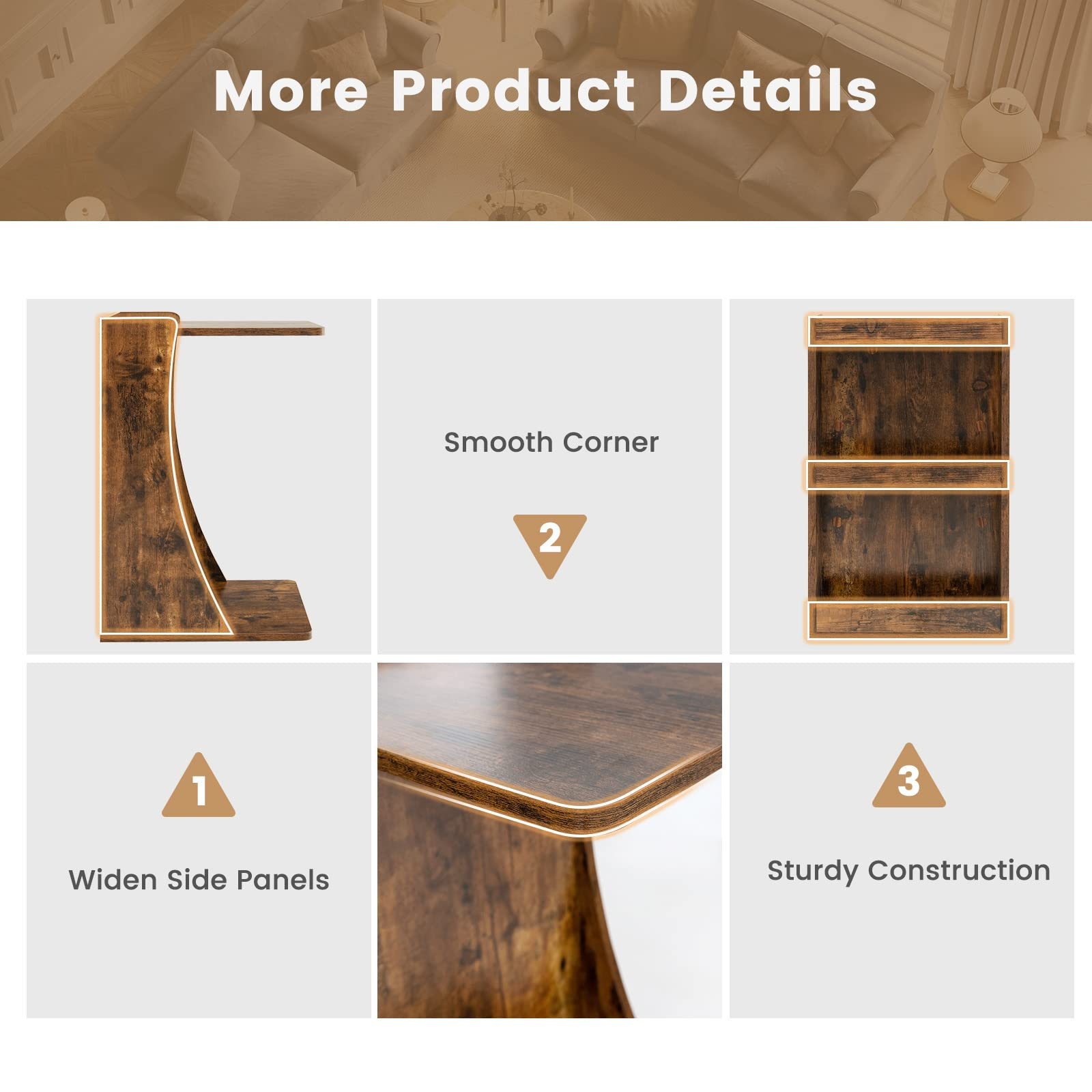 - Convenient C-shaped Table: This c-shaped end table is easy to slide the bottom underneath your sofa, couch, or bed to make your snacks, coffee, and books easier to reach. If you want to sit on the sofa and watch TV while eating, you can tuck this side table under the sofa for convenient use. Plus, the smooth round corner will avoid bumping hurt.