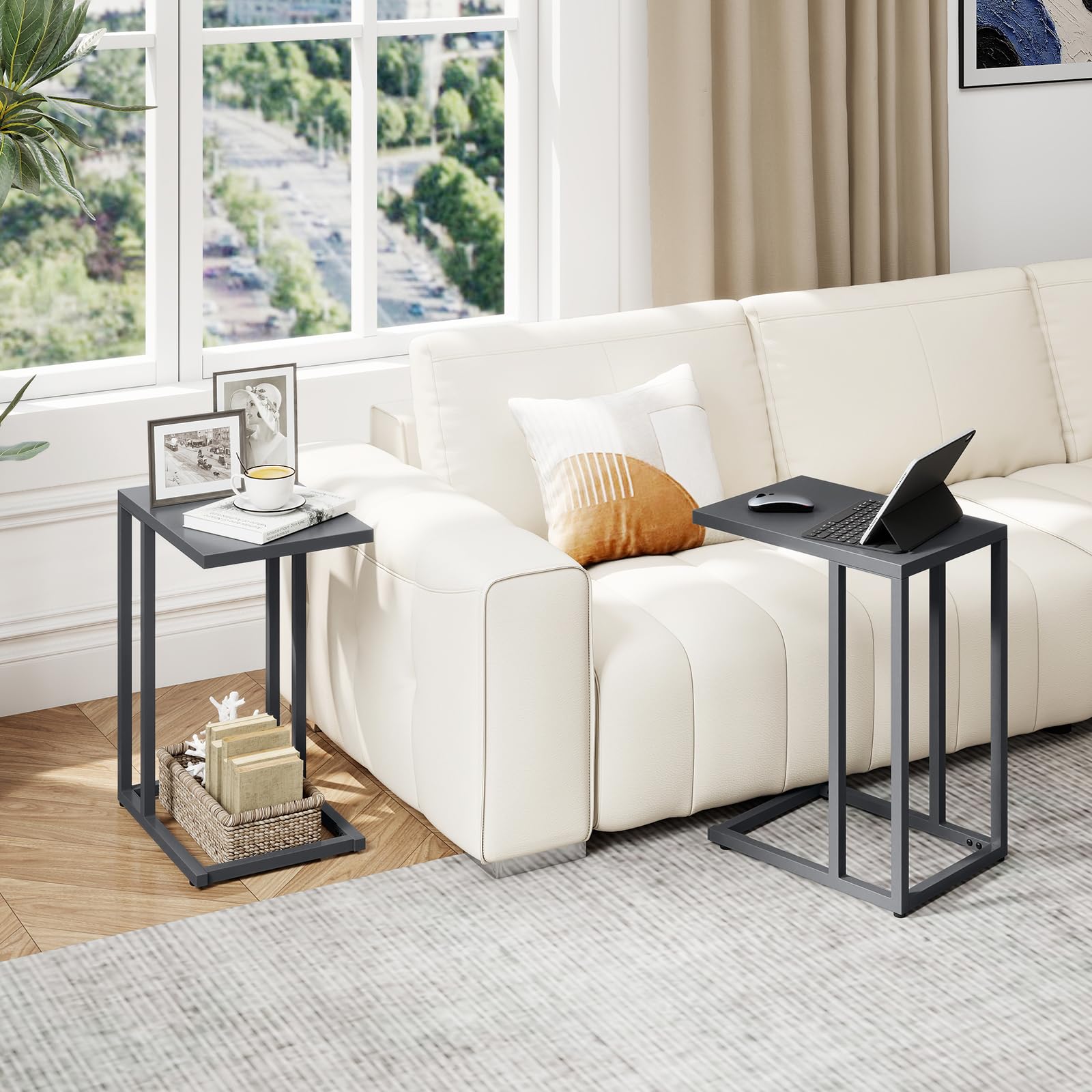 Transform your living space with our stylish C-shaped metal side table! Maximize your space with this space-saving table that can hold up to 66 lbs of your favorite items and easily adjusts to any surface. Whether you need a spot for drinks, snacks, or decorations, this versatile table has got you covered, indoors or outdoors. With its sleek matte finish and easy-to-clean surface, this end table adds a touch of modern elegance to any room. Setting up is a breeze with just 5 parts and 3 simple steps! Make a big impact with minimal effort - see how this convenient, stylish side table can elevate your living space in minutes!