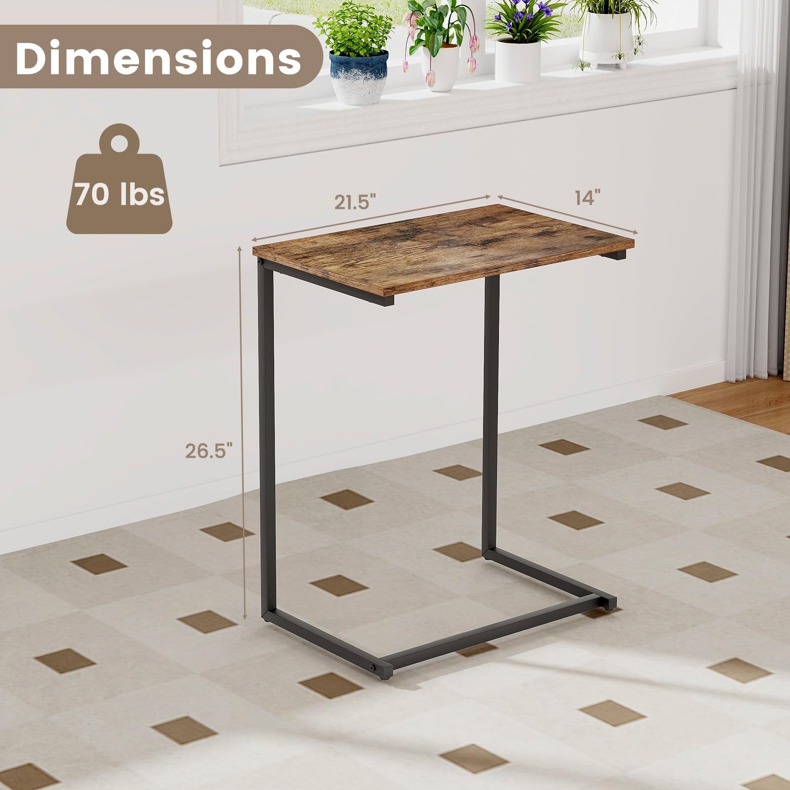 Don’t you think that it's painful to pause watching and have to stand up to reach snacks or drinks when you're sitting on the sofa enjoying a movie? Here is our C-shaped side table which is perfect for putting things right in your reach while you’re sitting on your couch, armchair or recliner! Made of premium engineered wood and supported by a heavy-duty metal frame, this table is perfect for holding coffee, fruit, remote control, etc. The adjustable foot pads ensure that it can maintain stability on uneven floor. In addition, it is worth mentioning that the side table with unique C-shaped design can effectively use the space under the sofa or bed, which is an ideal storage solution for small spaces!
