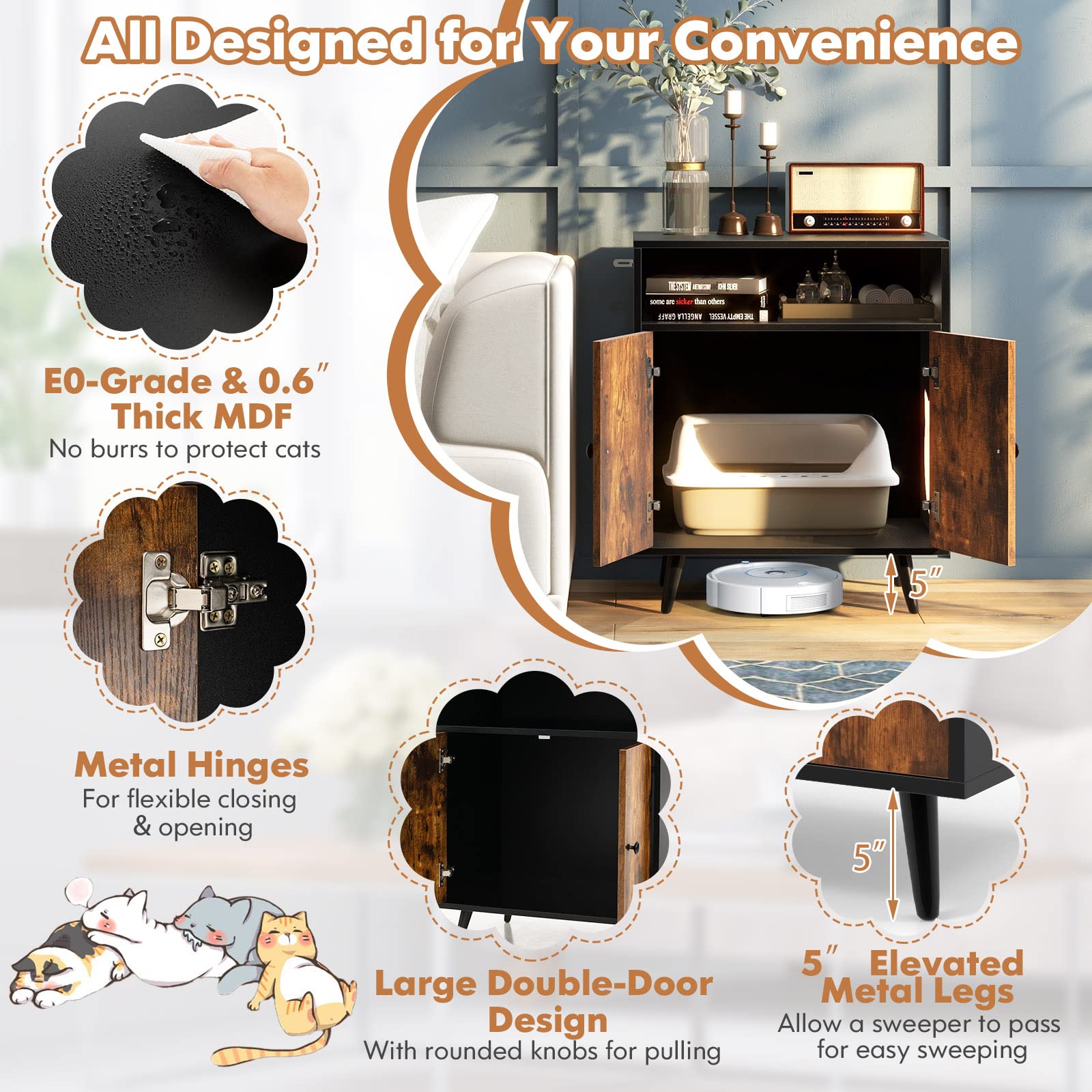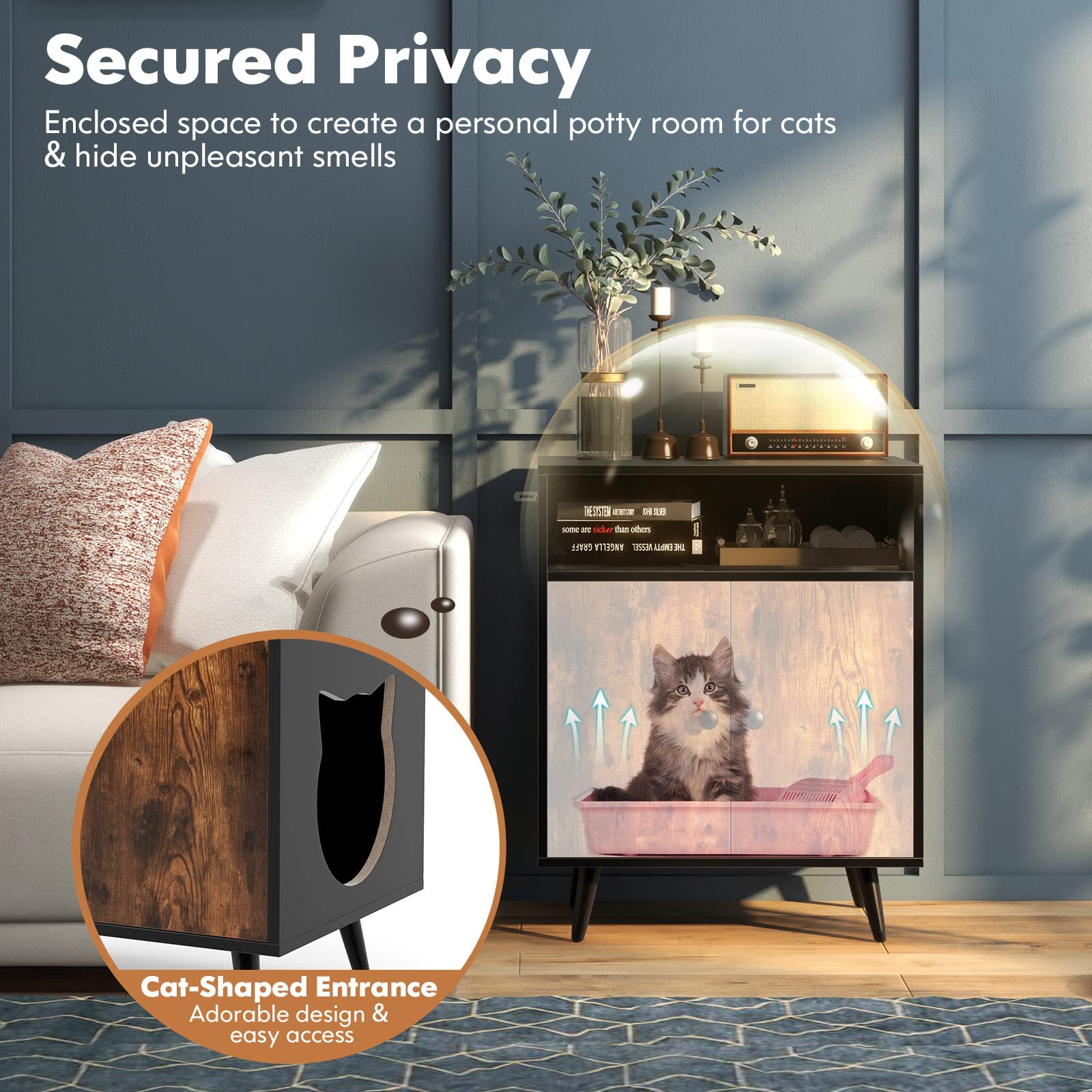 - 2-In-1 Design for Wide Use: Practically, the cat litter box enclosure can also work as a modern storage cabinet. Place it in the living room, bedroom, porch, or study, the cat washroom cabinet would perfectly meet the storage needs of cat people.
