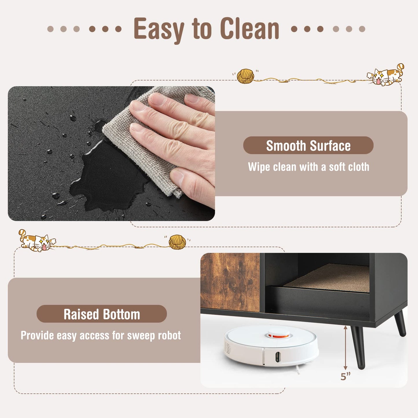- Sturdy Wood Structure: Made of premium MDF board with waterproof and scratch-resistant paint, the cat little box is not easy to deform and sturdy enough with a long lifespan. In addition, equipped with 4 solid metal legs providing strong support for excellent stability.