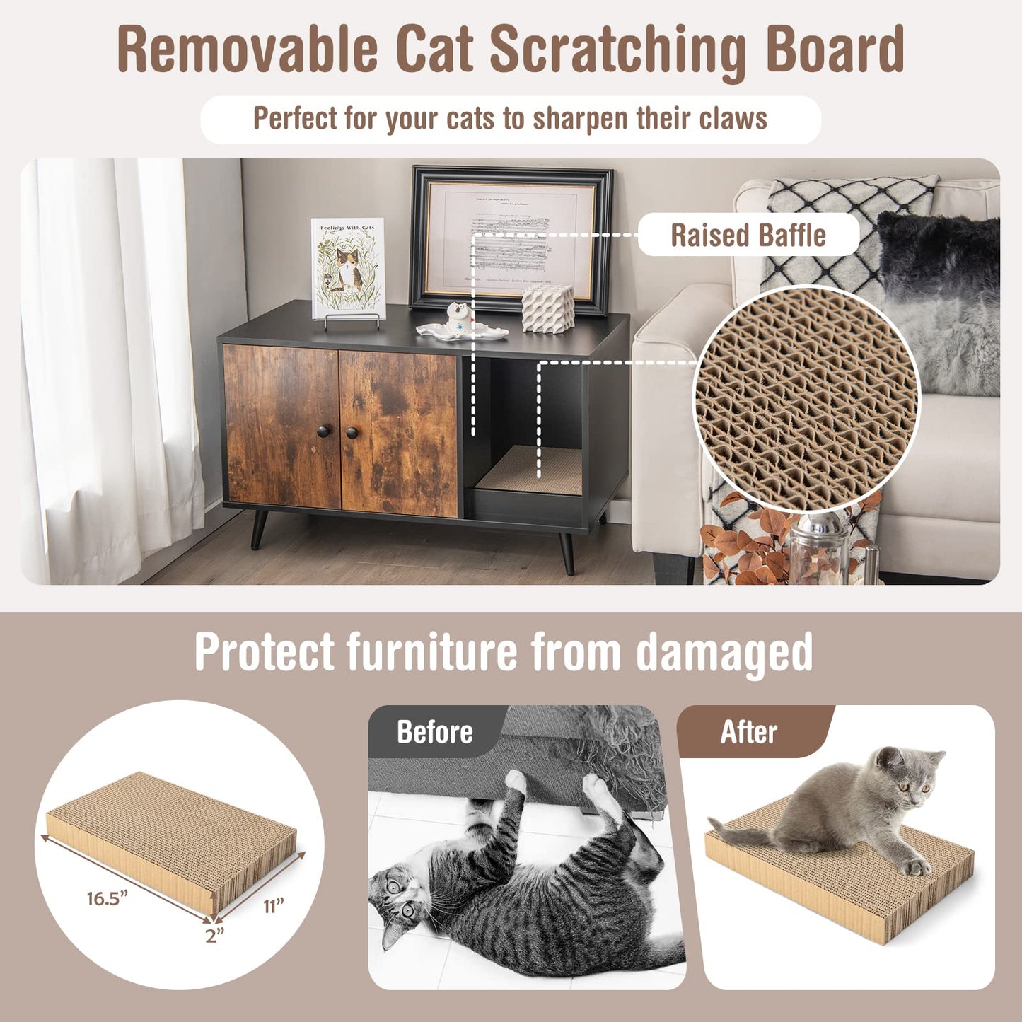 - 3-IN-1 Multifunctional Uses: The functional cat box cabinet with 2 doors can hide a cat litter box and cat house which can be used either as the little box enclosure, as the cat lounging house, or as the coffee table or side cabinet. Besides, its modern appearance can perfectly blend into your home decor.