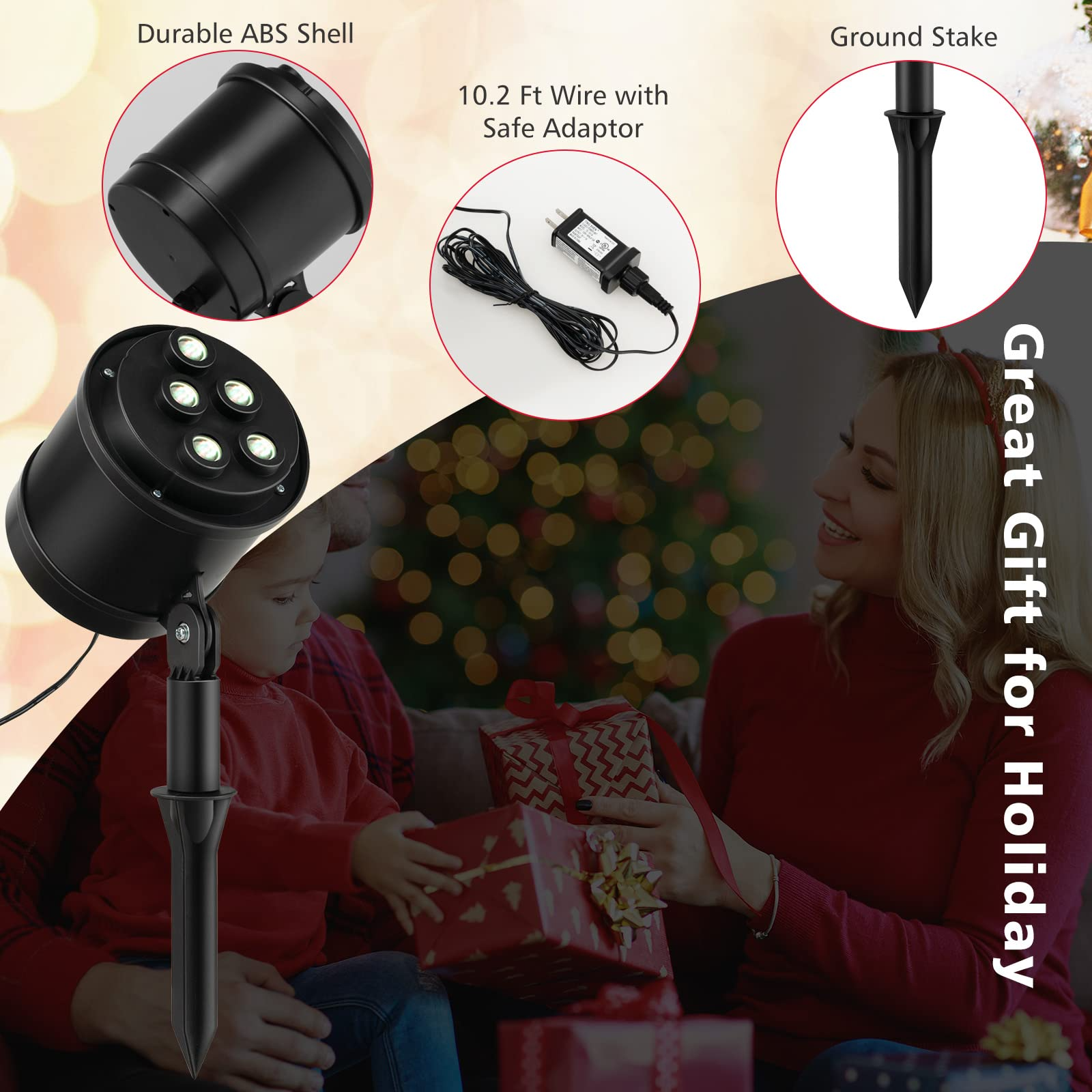 - IP44 Waterproof Level: This holiday projector light with a high-grade waterproof effect is rainproof, sun-resistant, and freeze-proof. With 131 Fahrenheit highest working temperature and 5 degrees lowest temperature, this light projector is ideal for all-season use. Besides, the premium PC lens and durable ABS shell ensure longer service.