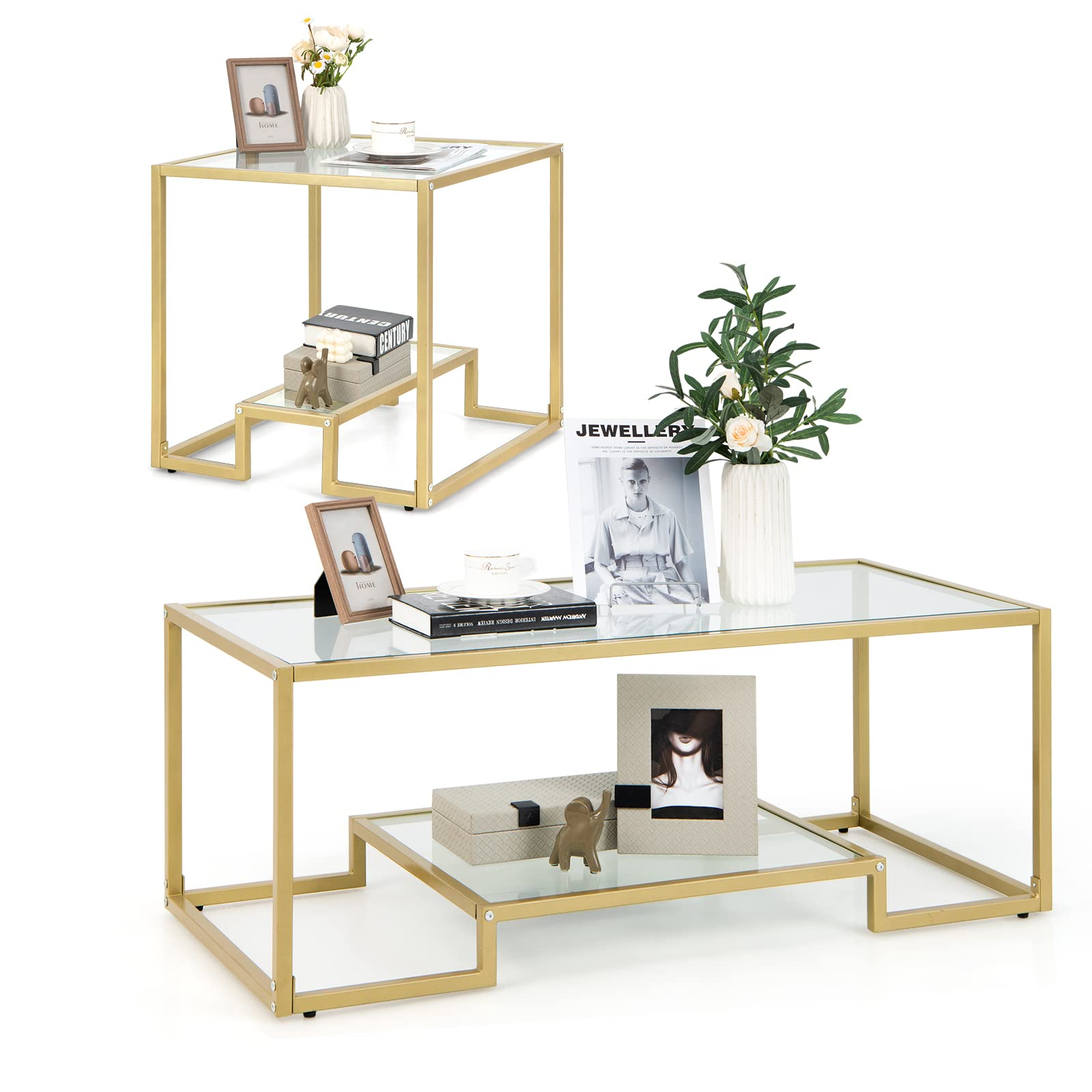 Tangkula Coffee Table Set of 2, Living Room Accent Table Set Includes Modern Deluxe Center Table & Square End Table