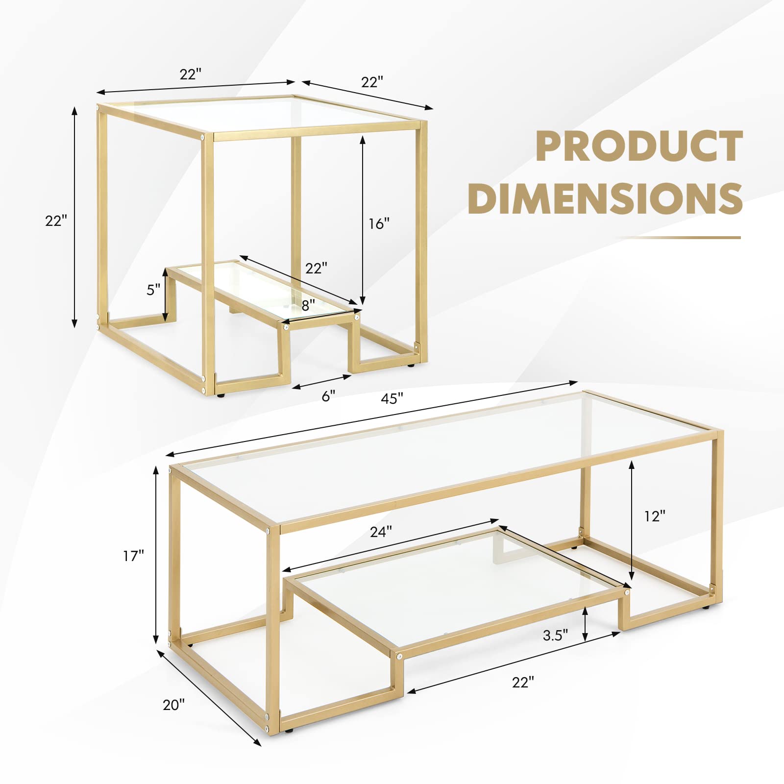 • Must-Have for Modern Furnishing: This living room table set is a real eye-catcher that blends into modern living space. The stylish golden finished frame will match the modern & luxurious decorations in the living room, while the unique frame shape at the base can show the personality without compromising sturdiness.