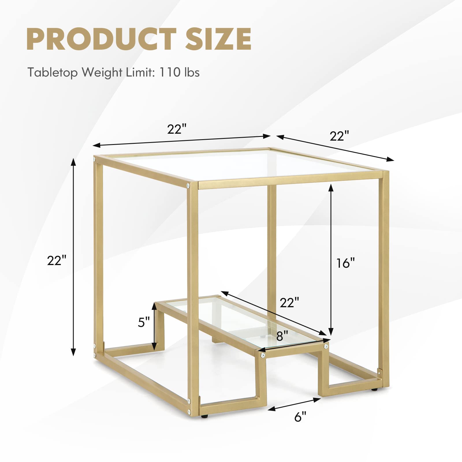• Stable Construction: Supported by a heavy-duty metal frame, the sofa side table features a rather sturdy construction with considerable load-bearing capacity. For example, the tabletop of each table can hold up to 110 lbs. What's more, with the adjustable foot pads, the 2-tier accent tables are free from wobbling.