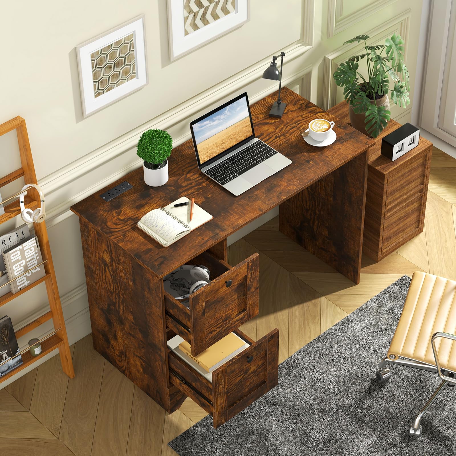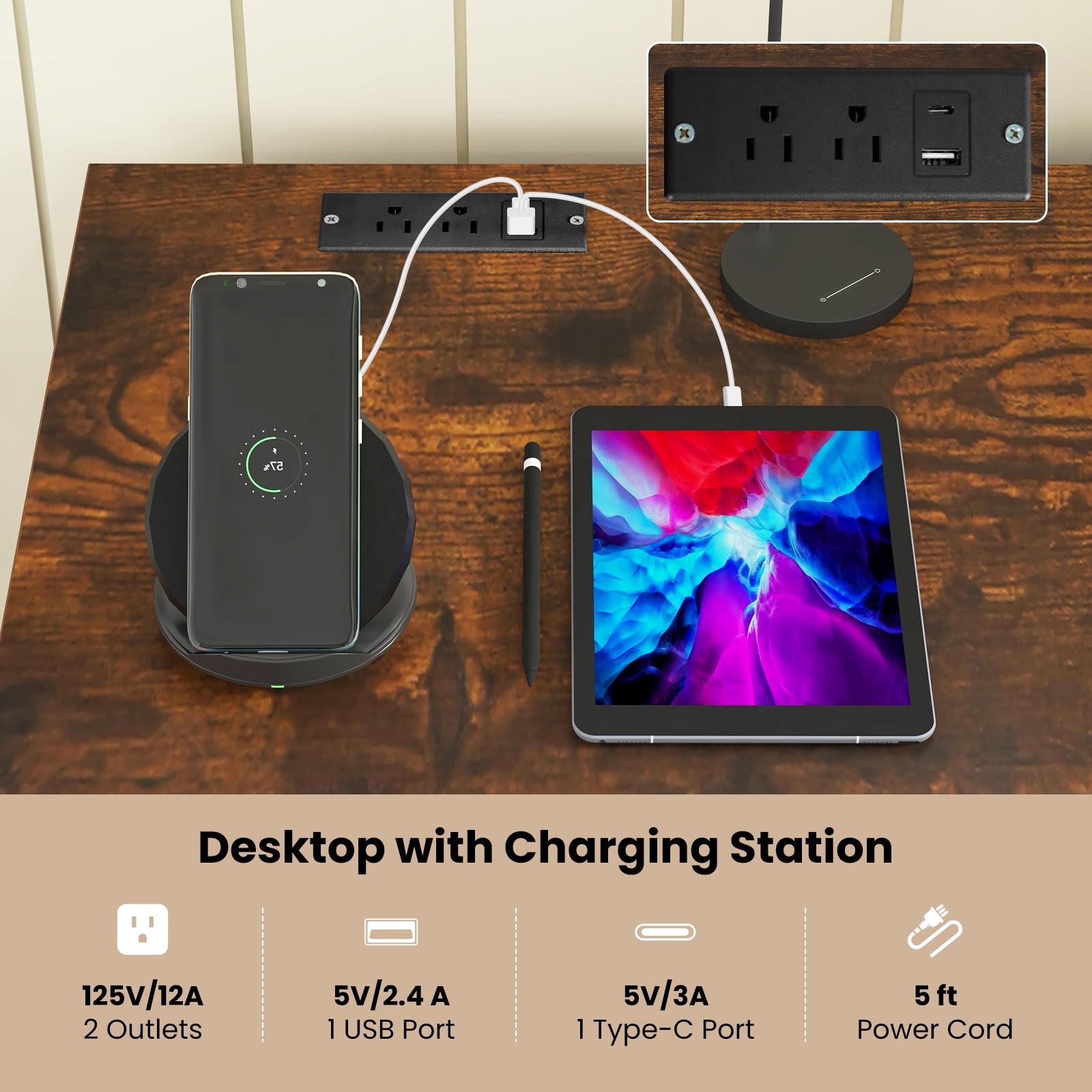 - Desktop with Charging Station: This computer desk comes with a built-in charging station including 2 outlets, 1 USB port and 1 type-C port. You can easily charge your cell phone, computer and other electronic devices without the hassle of using messy extension cords.