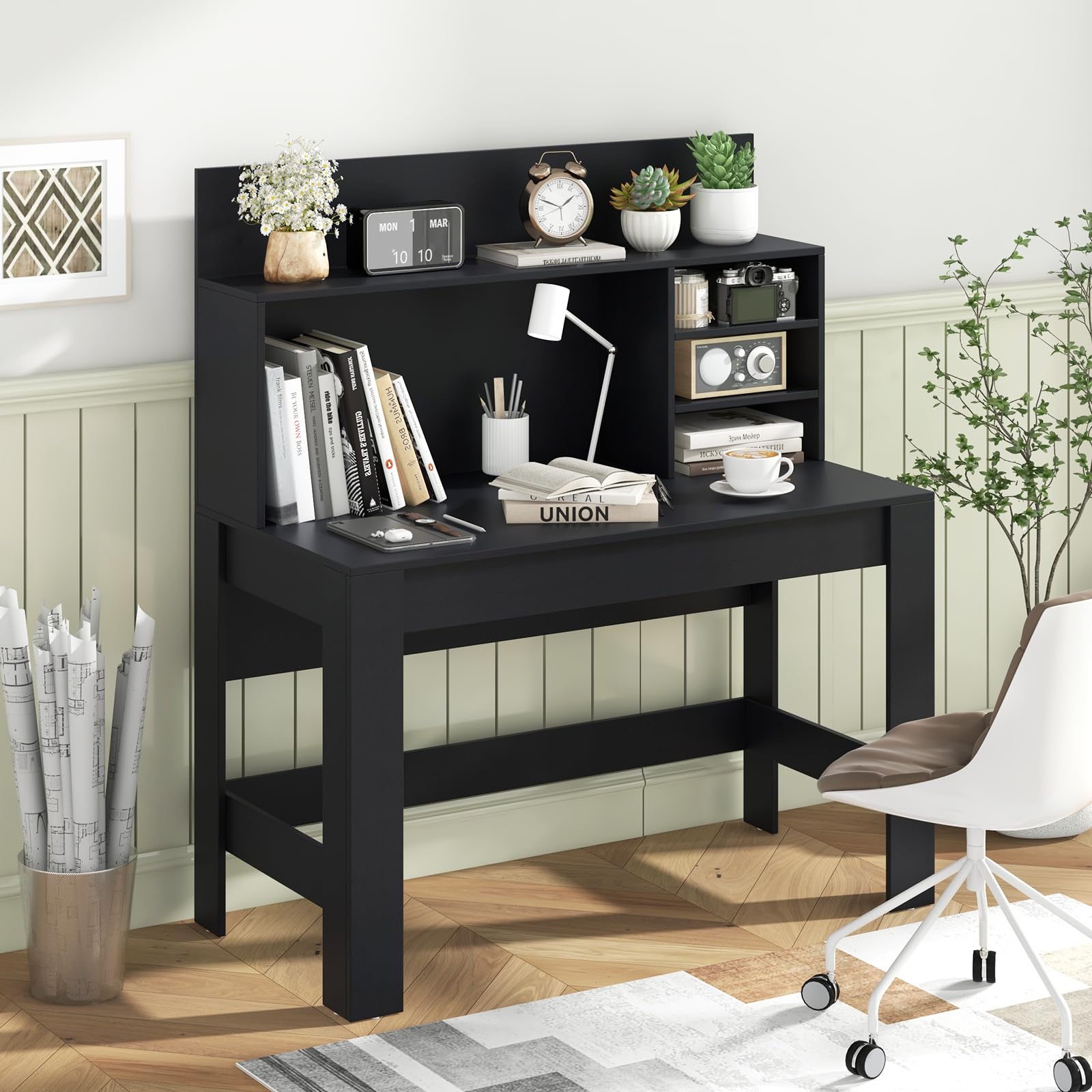 • Spacious Storage Space: The 48" long desktop provides plenty of space for your laptop or PC. This study table features a storage hutch with partitions that organize various supplies neatly, leaving an ample table surface. These shelves keep books, plants, or scattered items within arm's reach and make your working area tidy and in order.