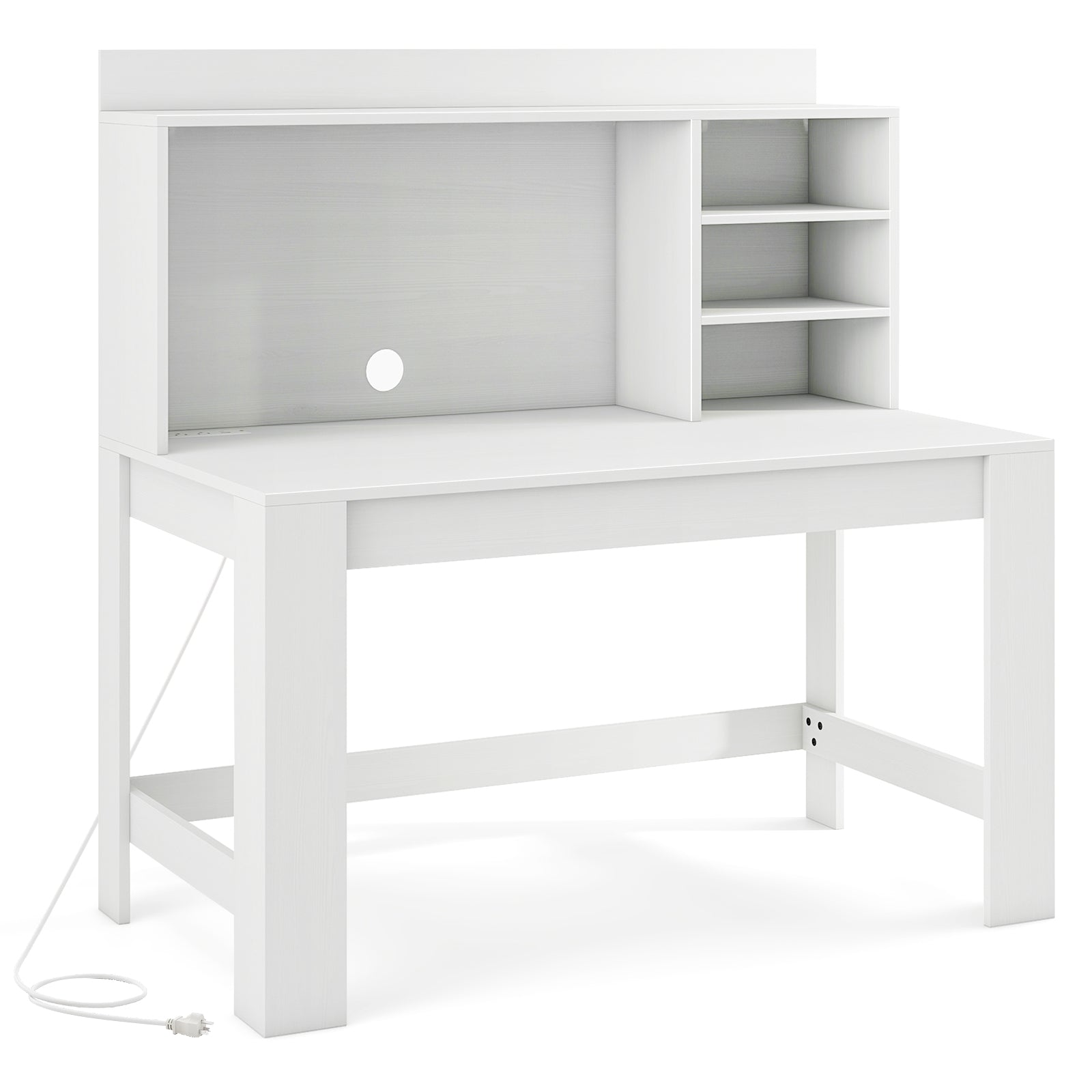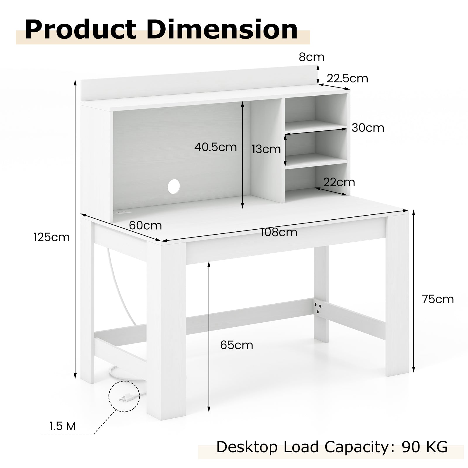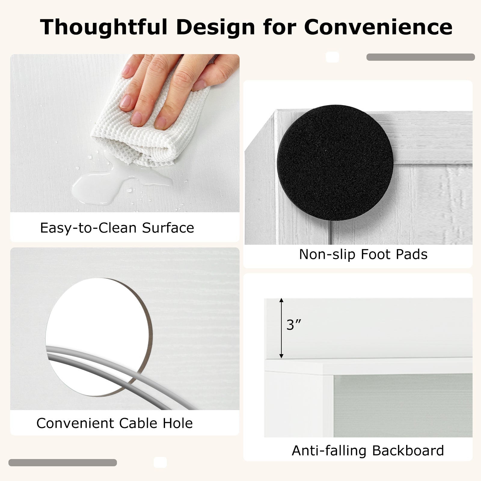 Featuring a spacious desktop and a hutch, this computer desk provides plenty of room for your stuff and keeps them within reach. Laptops, books, potted plants, family photos, and various items can be displayed, providing you with a comfortable and relaxing environment. The cable management hole keeps messy wires organized. And the spacious leg room allows you to fully stretch your legs. Plus non-slip foot pads, reasonable using height, and a stable wooden structure provide stable support for your studying or working essentials. In addition, the safety anti-tipping device will further enhance stability. With versatile use functions, the table can be used as a workstation, a student's desk, and even a vanity table. Add a stylish workspace to simplify your work and study time with this computer office desk!