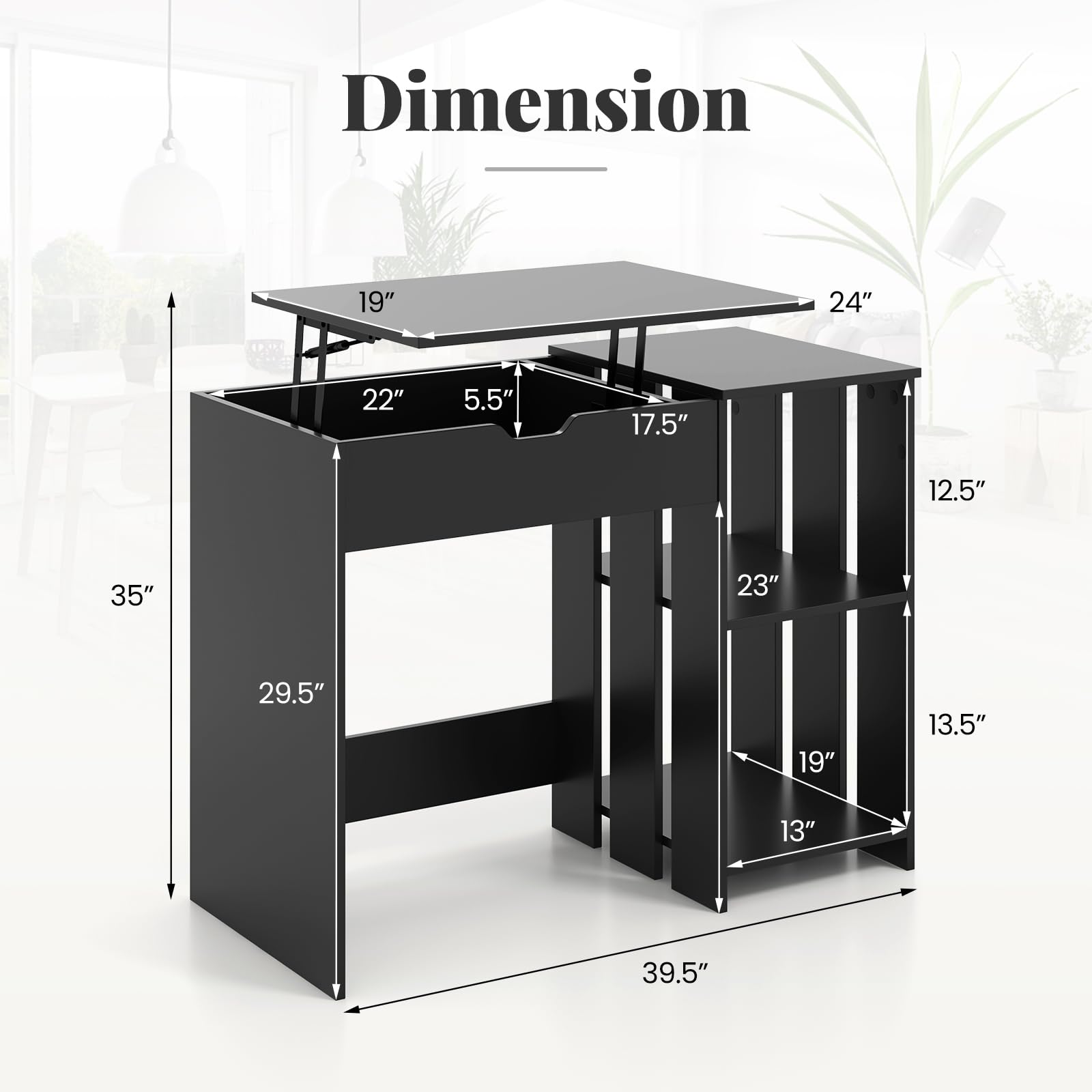 - Lift Top Design: This computer desk features a lift-top mechanism that adjusts from a 29.5" tabletop height to a standing height of 35". So, this desk with lift top allows you to switch between standing and sitting positions for a healthy alternative.
