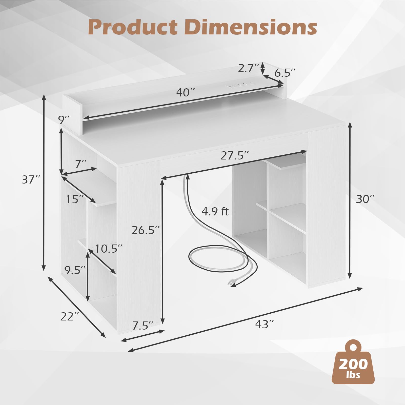Transform Your Workspace with Our Ultra-Modern Essentials Desk! Sick of tangled wires and cluttered spaces? Say hello to seamless productivity with our desk's built-in power strip - goodbye messy cords! Dive into order with stylish dual 3-tier bookcases, ideal for everything from books to sundries. Plus, boost your comfort with the elevated shelf that brings your monitor to the perfect eye-level, easing your workdays. Crafted for endurance from top-tier materials and designed with a sleek, modern look, this desk fits effortlessly into any room. Upgrade your home office or dorm today - a neater, more stylish workspace awaits!