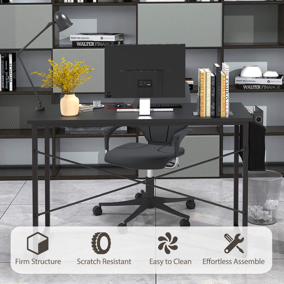 This vintage-style computer desk is designed for multi-purpose. As a great choice for your home or office activity, the study table provides plenty of space for your monitor or laptop, which also maximizes your home and office space, and keeps your essentials in order. The solid metal frame and triangle strut ensure stability, letting you enjoy your work or study on this table. All table feet are equipped with adjustable pads for stable usage. Additionally, with its elegant and modern design, this computer chair can perfectly fit in your house and office.