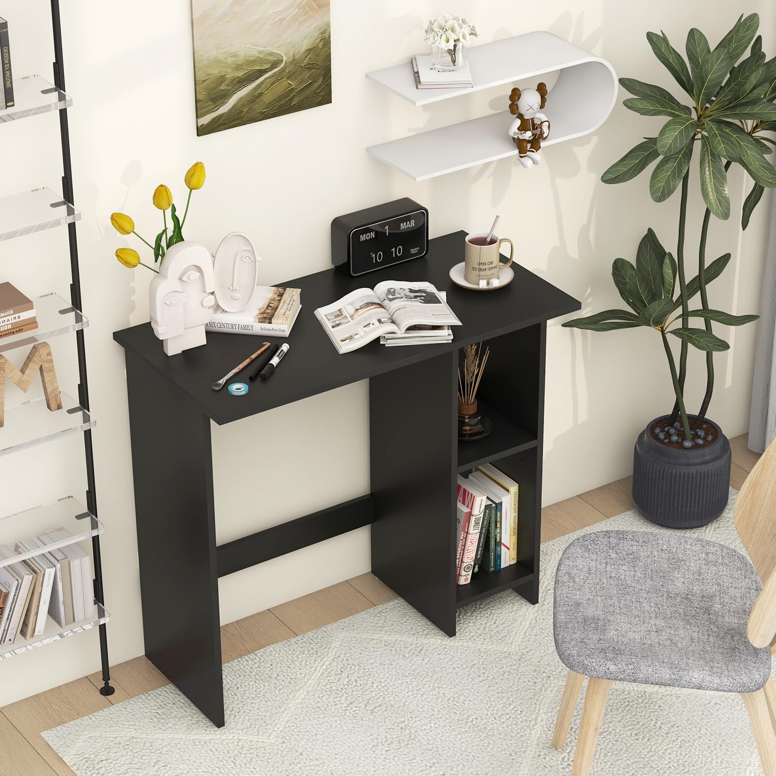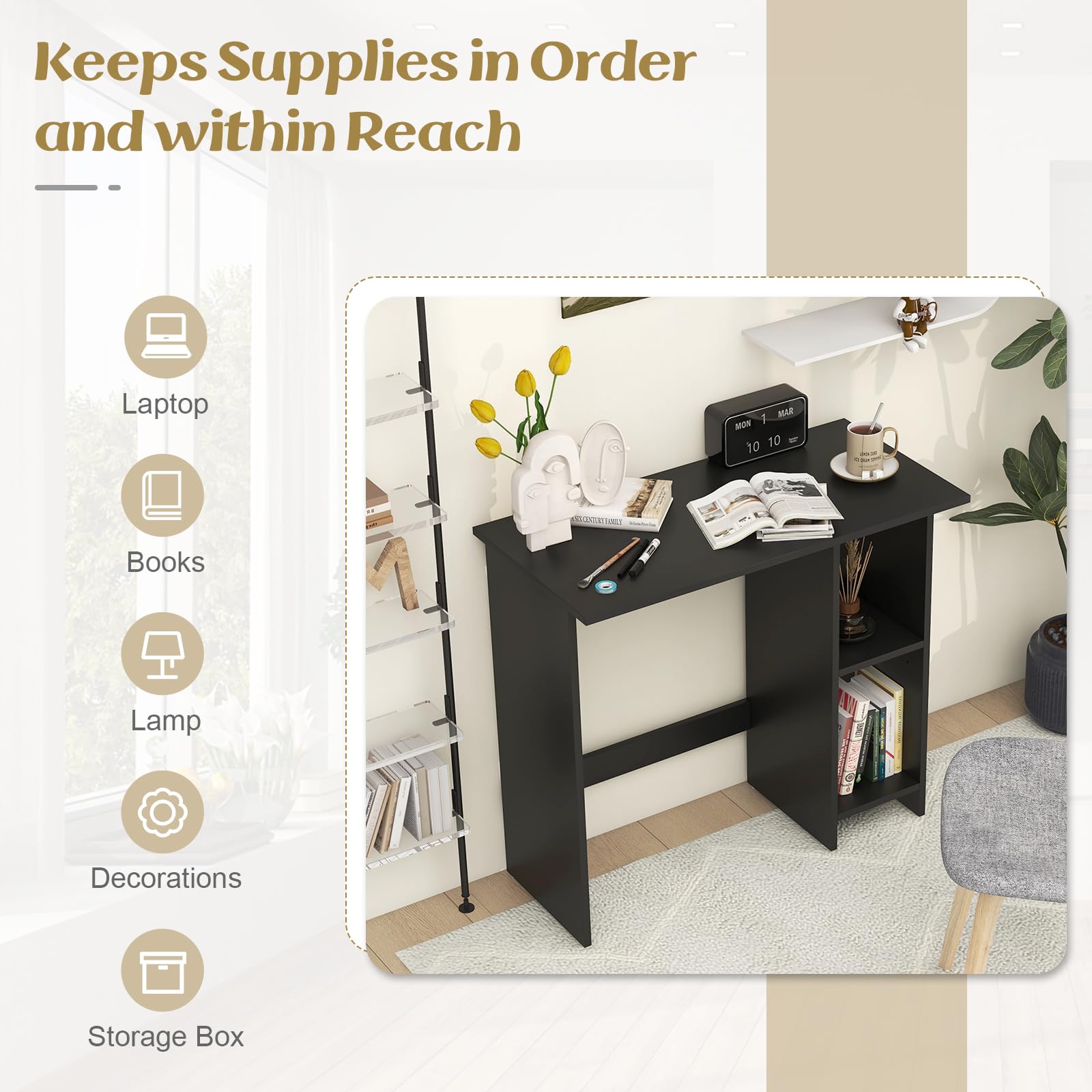 - Clutter-free Workspace: The desktop provides sufficient space for a variety of essentials, such as laptop, books, and stationery, to free you from messy surroundings and help you concentrate on working for higher efficiency. In addition, the space saving desk occupies less floor space, perfect for limited dorms.