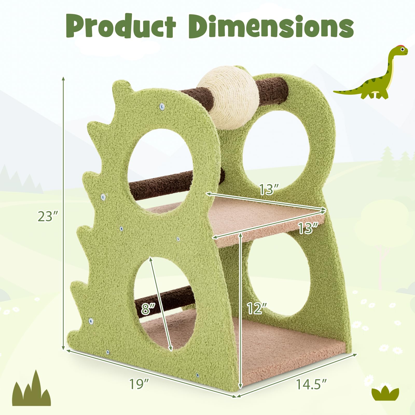 Tangkula Cute Cat Tree, Dinosaur-Shaped Cat Tower with Rotatable Sisal Scratching Ball (Green)