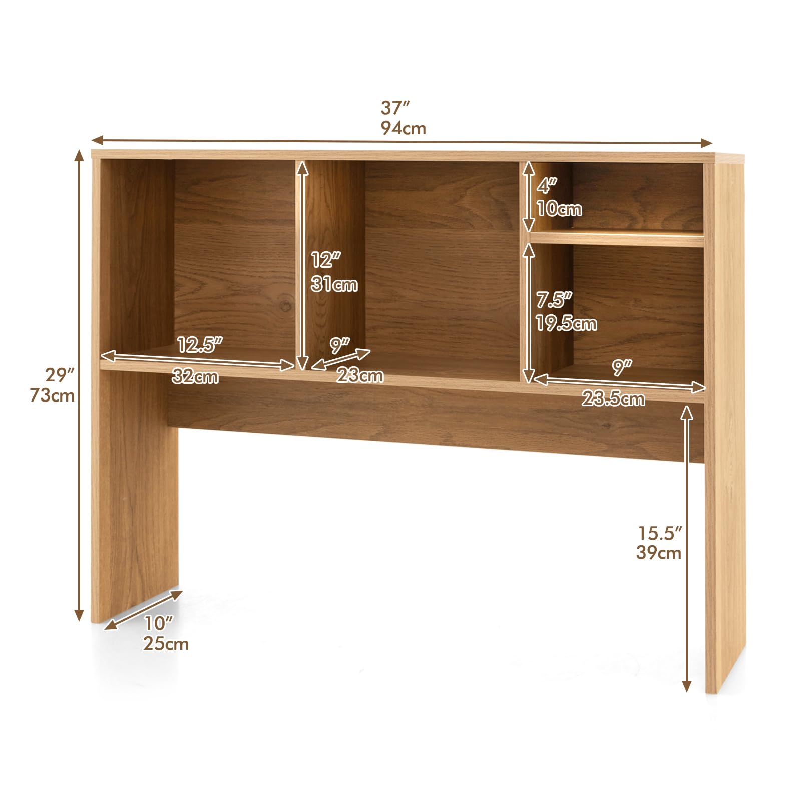 - Organize & Declutter Your Computer Desk: Would you like to add storage space to your small computer desk? Try this tabletop bookshelf! With a 36"W x 15.5"H bottom compartment and 4 storage cubbies, it can help to make full use of the vertical space.