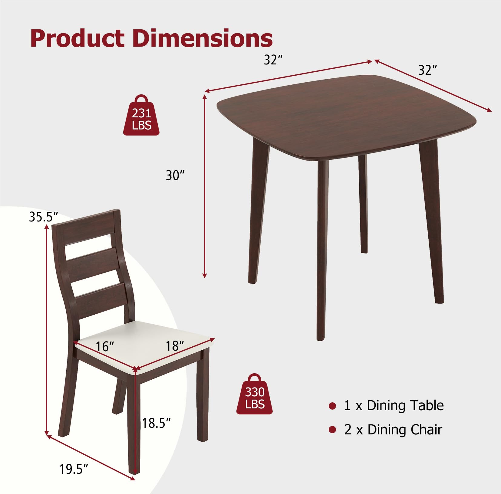 - MID-CENTURY DINING TABLE SET: This dining room furniture set includes 1 dining table & 2 chairs. It will be a perfect choice for you to have meals, afternoon tea, chat with your family or friend or work alone.