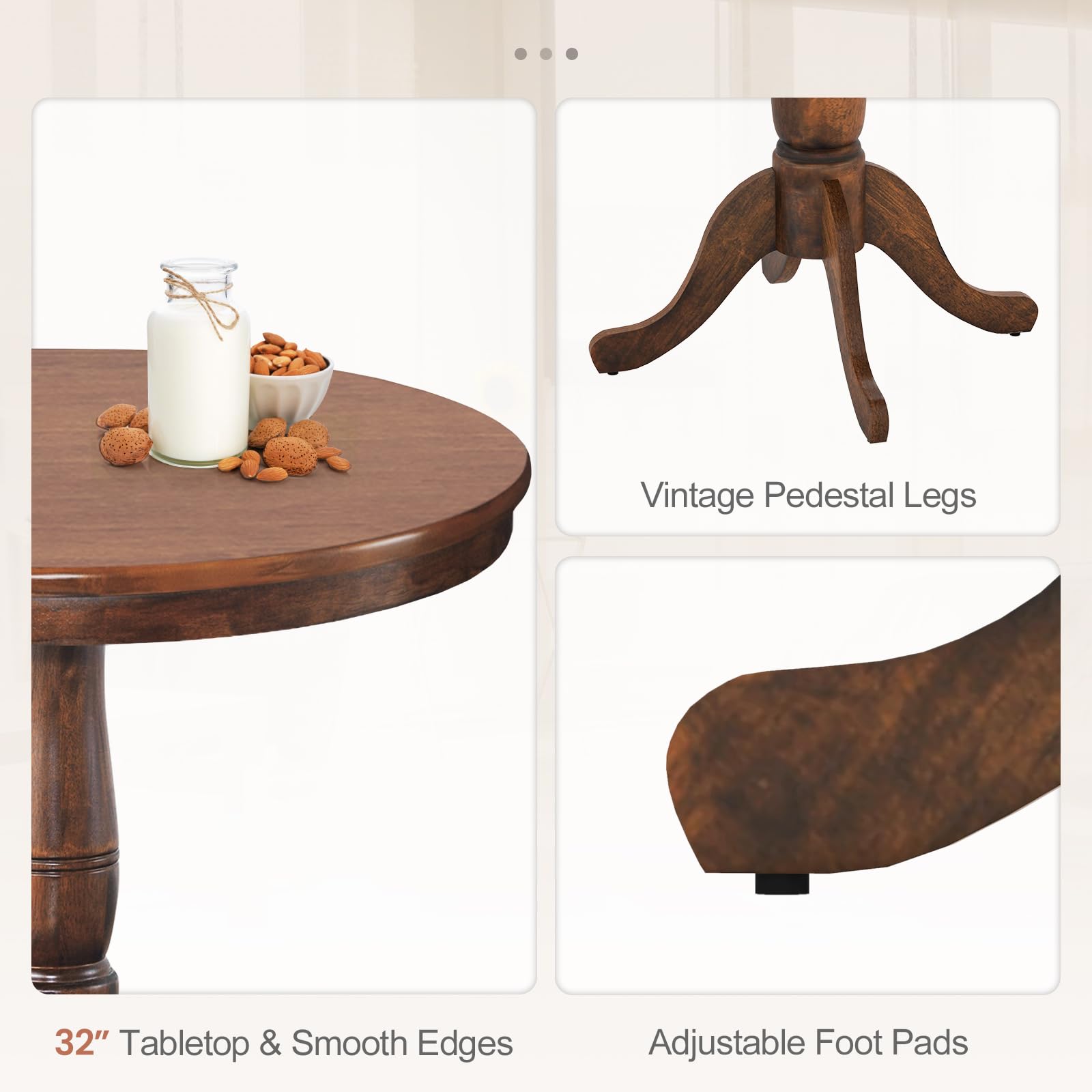 - Vintage Charm with Versatile Functionality: Embrace the classic and timeless retro style of our 3-piece dining set, adding an elegant touch to your home decor. It creates a warm and inviting ambiance for a variety of occasions, from formal dinners to casual afternoon teas.