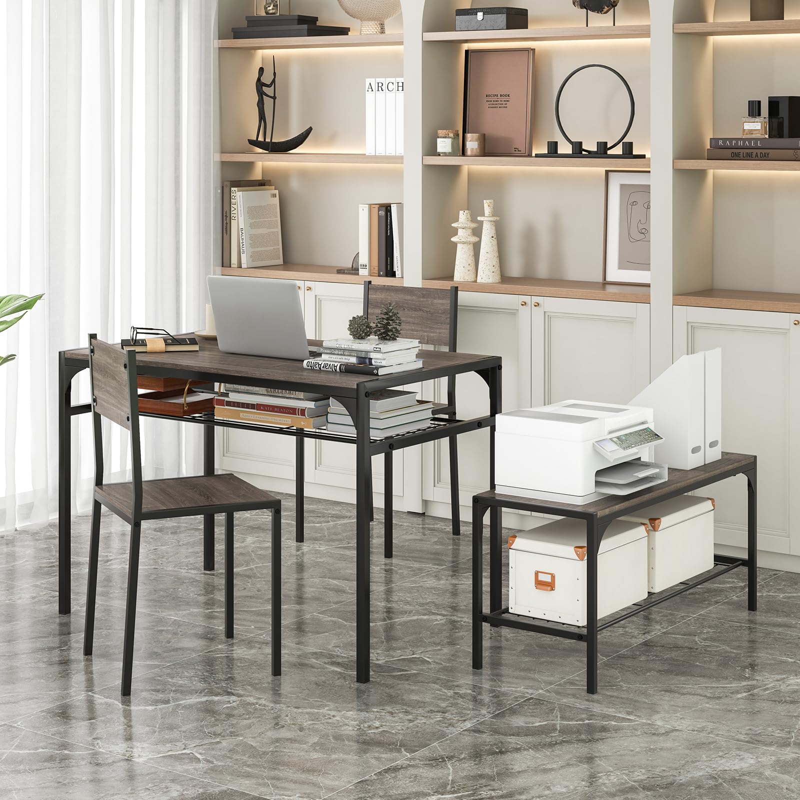 - 【Versatile Usage for Various Occasion】Our 4-person dinette is perfect for a variety of occasions, including use as a modern and stylish dining table in your home or in other spaces. The industrial kitchen set can also be used as a functional desk or dresser, meeting all your daily needs.