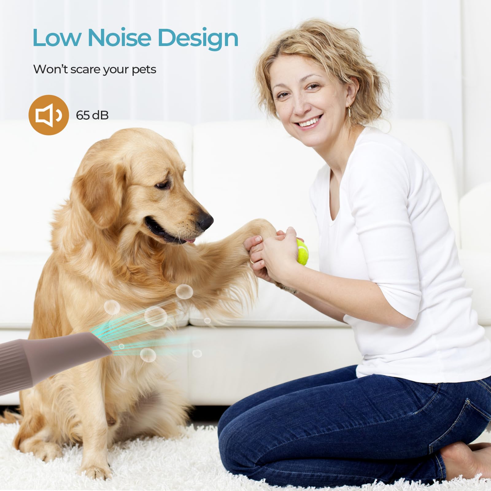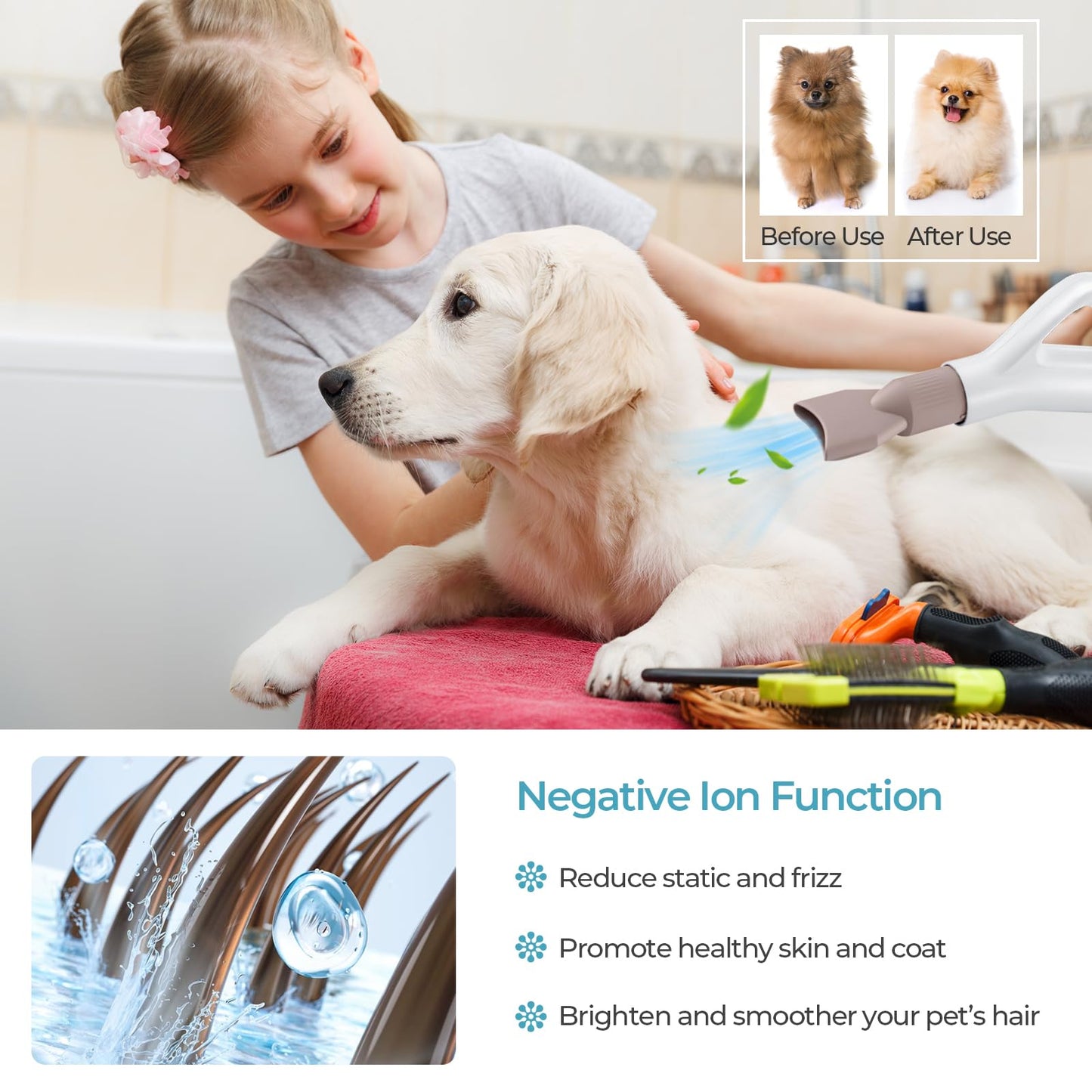 - Negative Ion Function: The dog grooming dryer is equipped with a built-in ionizer that could reduce static and frizz, resulting in a healthier and shinier coat. And the negative ions help neutralize positive ions in the air, minimizing tangling and improving overall hair health.