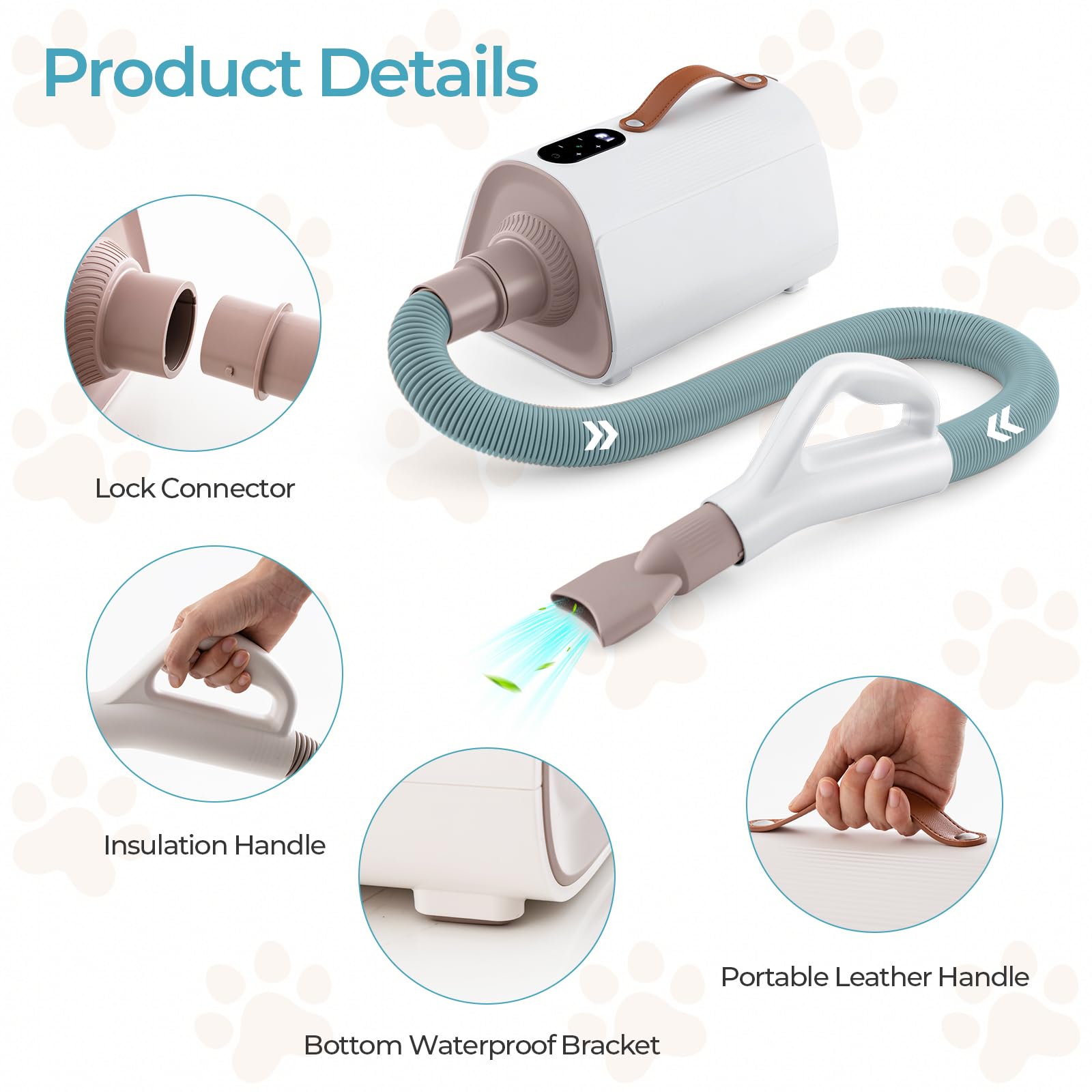Features 5-level wind speed control from 30-95 m/s, suitable for different-sized pets
