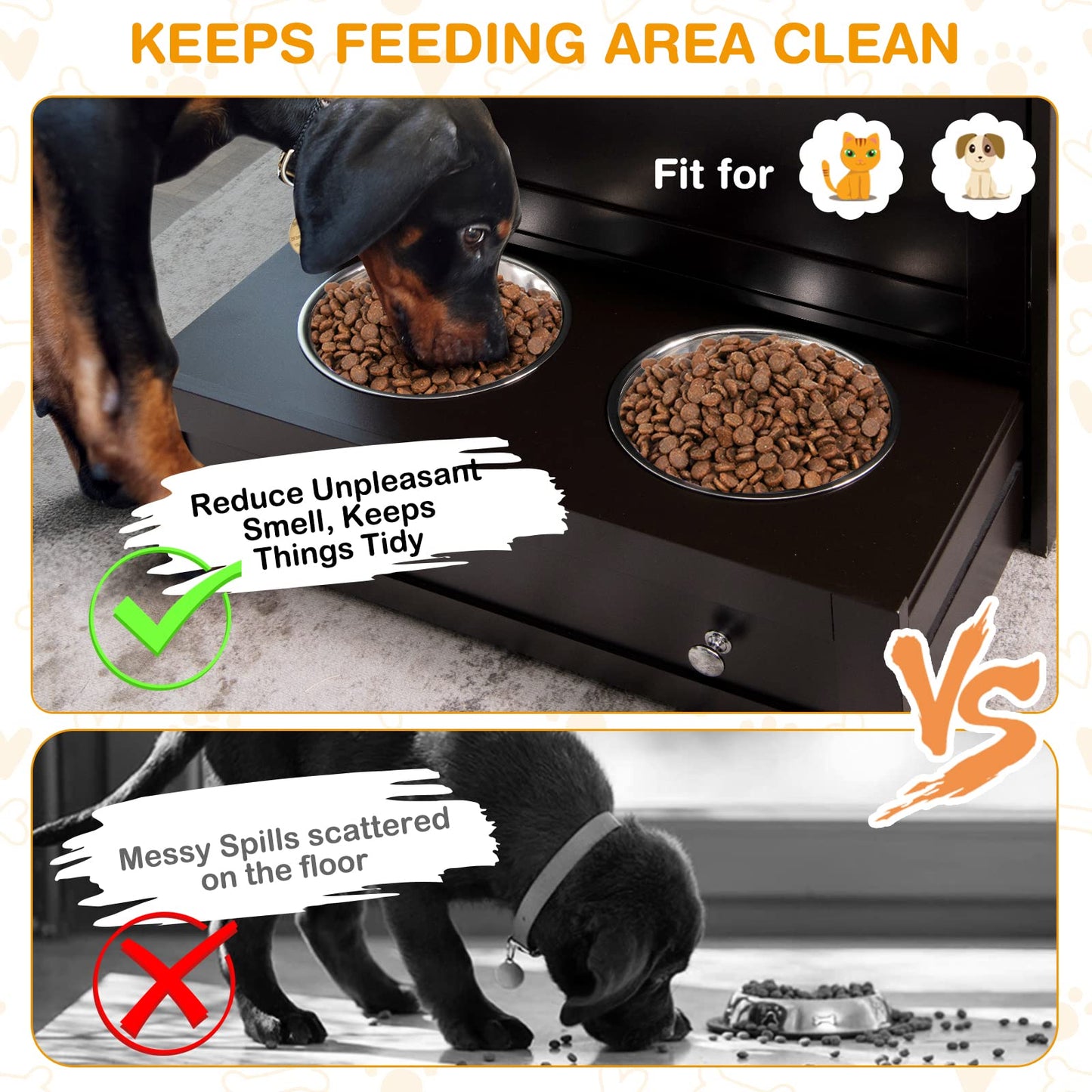 • Keep Feeding Area Clean: Two stainless steel bowls in the drawer is removable and can be placed separately for food and water to avoid trouble and mess. Meanwhile, the bowl can be secured in drawers without tipping or kicking across the floor. It is easy to clean the steel bowls and wipe the station to Keep tidy.
